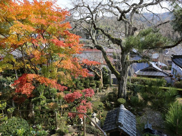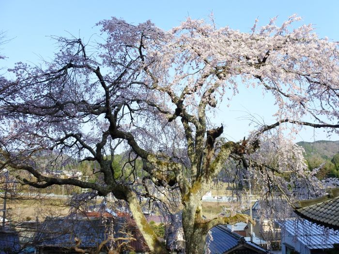 Считается, что цветущее дерево сакуры было взято из ветви храма Анкоку-дзи (более крупный храм с 600-летним деревом цветущей сакуры), храма, который связан с Асикага Такаудзи (первым сёгуном эпохи Муромати). Продолжая подниматься по каменным ступеням мимо Зала Каннон, можно наблюдать потрясающий вид на великолепные плачущие сакуры и горы вдали, который открывается отсюда.