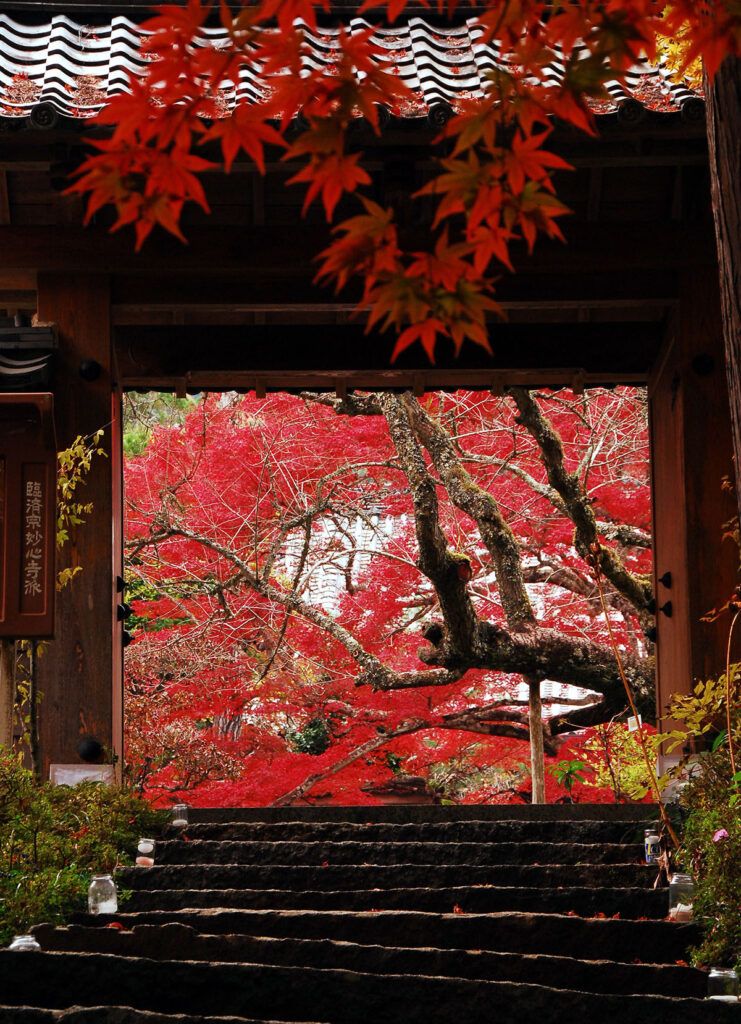 Расположенный в городе Камеока, в районе Вудленд Киото, храм Дзиндзо-дзи является храмом, принадлежащим школе Мёсиндзи секты Риндзай и, как говорят, был построен Сайчо в 790 году. Главная статуя Бхайшаджяраджи, известного как Будда медицины, по слухам, тоже была сделана Сайчо. Храм сгорел в 1575 году, но главная статуя Будды была спасена и теперь признана важным культурным достоянием Японии. Храм особенно красив осенью, так как на территории храма растет более 200 кленовых деревьев, в том числе один, возраст которого более 400 лет, а высота 43 фута, расположенный у лестницы главного зала. Кроме того, каждый год в храме проводятся мероприятия по освещению, во время которых ночью сакура освещается и переливается разными цветами, делая его еще красивее.