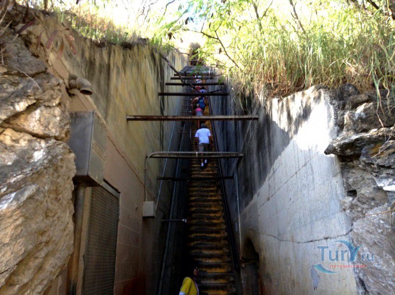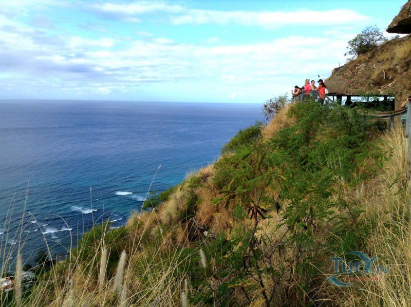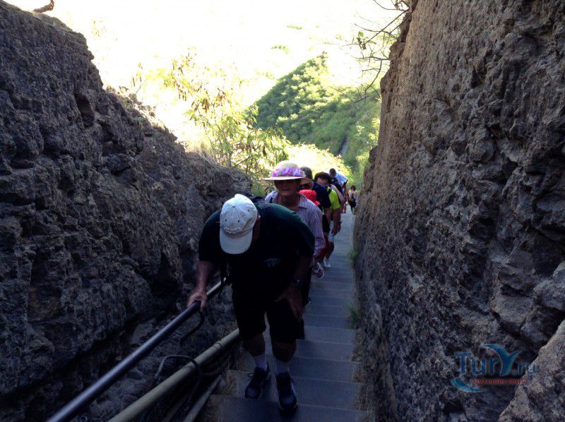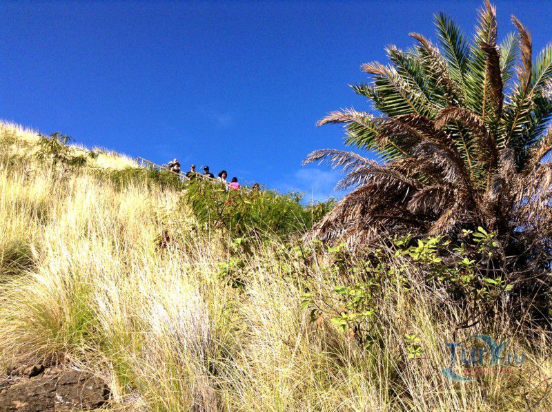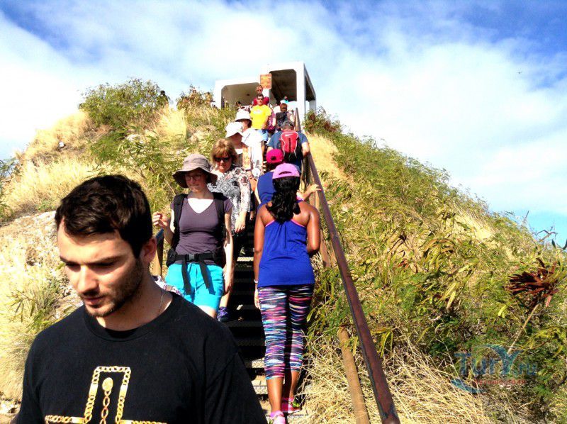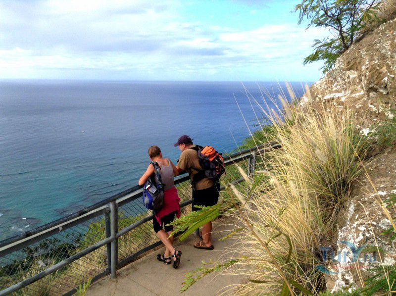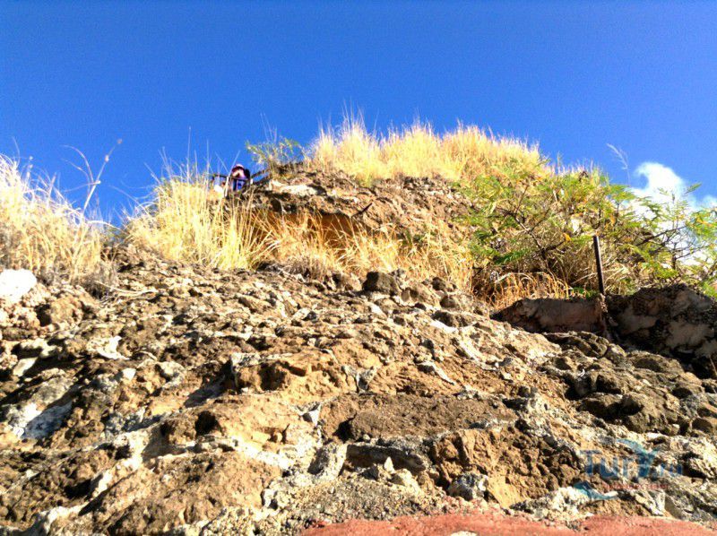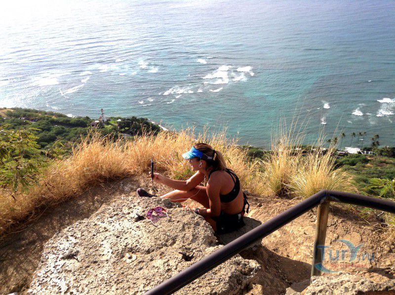 Тропа на вершину вулкана Lē'ahi была проложена в 1908 году как часть системы береговой обороны острова Оаху. Восхождение на гору идет вдоль хребта по змееобразному серпантину, далее внутри горы прорыт тоннель, пройдя через который, можно подняться по крутой лестнице в пульт управления огнем, который построен на вершине в 1911 году для защиты острова. Здесь же размещены бункеры и огромный навигационный маяк, построенный в 1917 году.