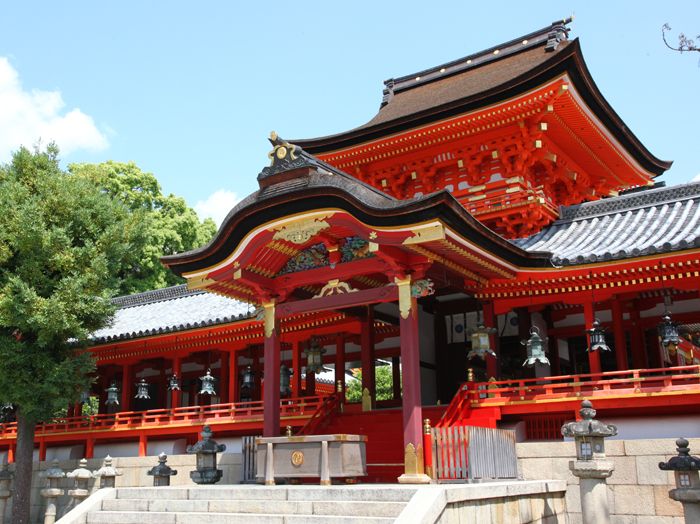 Одно из трех главных святилищ, носящих имя Хатимангу, святилище Ивасимидзу Хатимангу было посвящено богу для защиты нации в 860 году. После того, как главное святилище было восстановлено Одой Нобунагой, а его монастырь перестроен Тоётоми Хидэёси, Токугава Иэмицу построил дополнительный десять храмовых построек 1634 года, все из которых являются частью этого национального достояния.