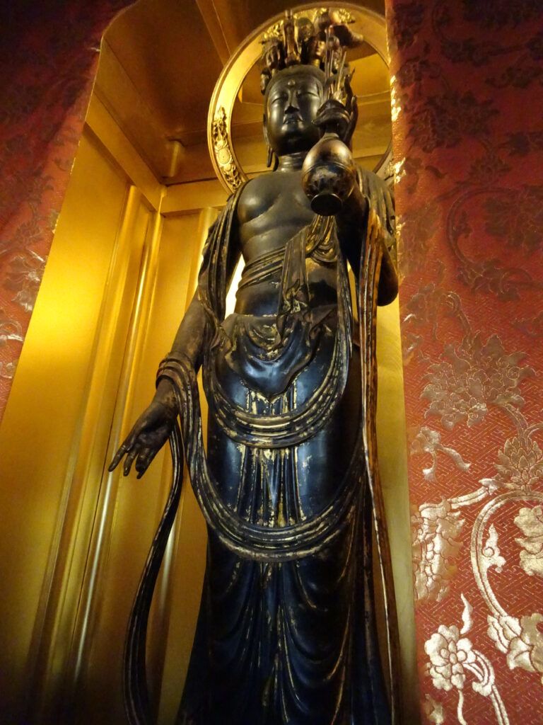 Главная статуя представляет собой бодхисаттву с одиннадцатью ликами Авалокитешвары, которая сделана с помощью техники, при которой бумага или ткань покрываются лаком, чтобы она выглядела как дерево, и зарегистрирована как национальное достояние как одна из семи статуй одиннадцатиликого бодхисаттвы Авалокитешвары в стране.