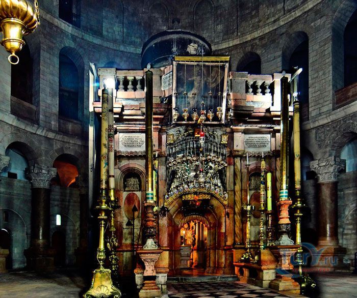 Храм Гроба Господня (Храм Воскресения Христова) расположен в Старом городе Иерусалима, в самом центре Христианского квартала. Он возведен на том месте, где, согласно Священному Писанию, был распят, погребён, а затем воскрес Иисус Христос. Начиная с IV века нашей эры, Храм Воскресения Христова является местом паломничества для христиан всего мира. Согласно Новому Завету, Иисус был распят в Голгофе (дословно - "место черепов") - районе заброшенных каменных карьеров, расположенном в то время за пределами городских стен Иерусалима. Спустя 10 лет после распятия Христа была построена третья стена, которая оградила площадь казни и захоронения Иисуса Христа. В 70 году нашей эры римский император Тит полностью разрушил Иерусалим, а во II веке, при императоре Адриане, на его месте началось строительство нового римского города Элия Капитолина. По указу Адриана над пещерой Гроба Господня, чтобы навсегда скрыть место захоронения Иисуса Христа, был возведен языческий храм Венеры. В IV веке, во время правления императора Константина I, принявшего христианство, храм Венеры был разрушен, а на его месте заложена первая церковь Гроба Господня. Согласно легенде, Гроб Господень (гробница Иисуса Христа), Животворящий Крест, четыре гвоздя и титло INRI были обнаружены матерью Константина Великого, императрицей Еленой, совершавшей паломничество к месту казни Сына Божьего. Помимо Гроба Господня, в состав храмового комплекса вошли предполагаемое место Голгофы и место обретения Животворящего креста. В результате был построен монументальный комплекс зданий, состоявший из нескольких частей - круглого храма-мавзолея, названного Анастасис (в переводе с греческого - "Воскресение"), в центре которого был расположен Гроб Господень, базилика (Великая церковь), внутри которой была оборудована крипта, отмечающая место обретения Креста. Между Анастасисом и базиликой располагалось открытое пространство (перистиль), окружённое с четырёх сторон крытой колоннадой. Храм Воскресения Христова был освящён в присутствии императора Константина Великого 13 сентября 335 года. В 614 году Иерусалим был захвачен персидским царем Хосровом II, сооружения храма Гроба Господня были сильно повреждены, а Животворящий Крест похищен (только в 631 году византийский император Ираклий договорился о его возвращении и восстановил храм). В 1009 году халиф Аль-Хаким би-Амруллах развязал в Иерусалиме антихристианские погромы, в результате чего была полностью разрушена базилика. В ходе долгих переговоров между Фатимидским халифатом и Византийской империей в 1027-28 годах император Константин VIII выторговал у сына Аль-Хакима право на восстановление храма. Строительные работы продолжались и при Константине IX Мономахе, но до своего былого великолепия восстановленному храму было очень далеко. После захвата города крестоносцами в 1099 году Храм Гроба Господня был отстроен в романском стиле. В 1130-1147 годах был построен храм Воскресения, который вновь объединил под одной крышей все святые места, связанные со смертью и Воскресением Иисуса Христа. С тех пор Храм Гроба Господня ещё много раз перестраивался, достраивался и восстанавливался. Последняя масштабная реконструкция храма была проведена в 2016-2017 годах, в результате которой, в числе многих выполненных работ, с Кувуклии были убраны поддерживающие металличе