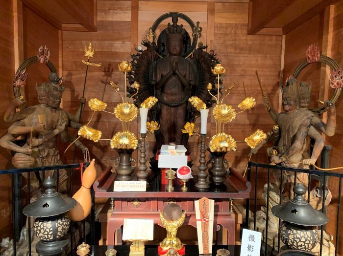 Основанный: как считается, в 704 году, храм Дзюходзи расположен в городе Киотанабэ. В главном святилище стоит статуя главного божества храма Дзюходзи, Тысячерукий бодхисаттва Каннон, которая признана важным культурным достоянием. Наряду со статуями в храме Фудзи-дэра в Осаке и Тосёдай-дзи в Наре, деревянная статуя высотой 180 см является одной из трех шедевров тысячерукой статуи Каннон в Японии, у которых на самом деле тысяча рук. На каждой руке есть нарисованный углем глаз, который со временем потускнел. Что особенно уникально в статуе бодхисаттвы Каннон в Джуходзи, так это то, что лицо статуи меняется в зависимости от освещения. Днем у статуи более торжественные и величавые черты, а при мягком освещении сумерек — более мягкие черты. Чтобы увидеть статую Тысячерукой Каннон, требуется предварительное бронирование (тел.: 0774-65-3422). Пожалуйста, сообщите нам дату вашего визита и количество прибывающих людей. Как правило, в дождливые дни или дни с высокой влажностью осмотр статуй невозможен.