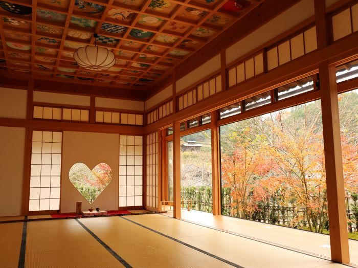 Форма сердца является традиционным узором, используемым в Японии для удачи и благословения, поэтому это окно известно как «Окно счастья» и всегда привлекает множество посетителей. На потолке бокового зала 160 различных картинок с цветами и японскими пейзажами, что создает красивые пейзажи над головой. В храме Сёдзю-ин также проводятся такие мероприятия, как плетение браслетов, написание сутр, рисование зарисовок Будды и занятия йогой (требуется предварительное бронирование).
