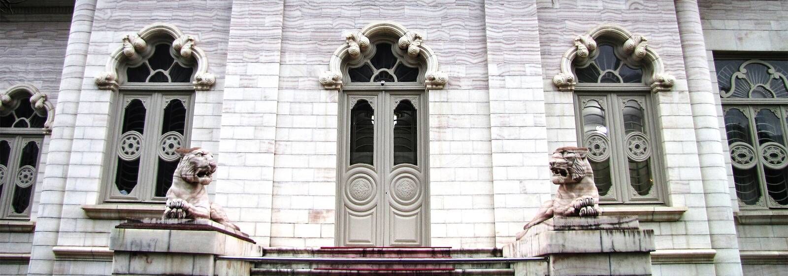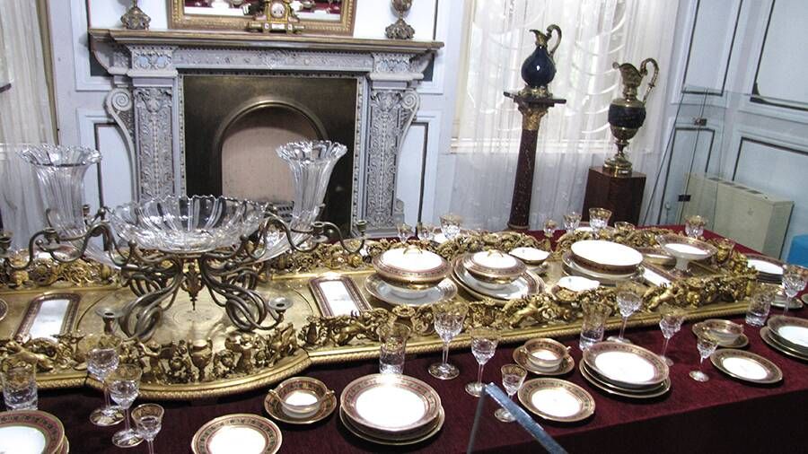 Как видно из названия, фасад дворца был построен из мрамора. Бассейн перед особняком, крыльцо и резные колонны — все из мрамора что на первый взгляд выглядит даже устрашающе.