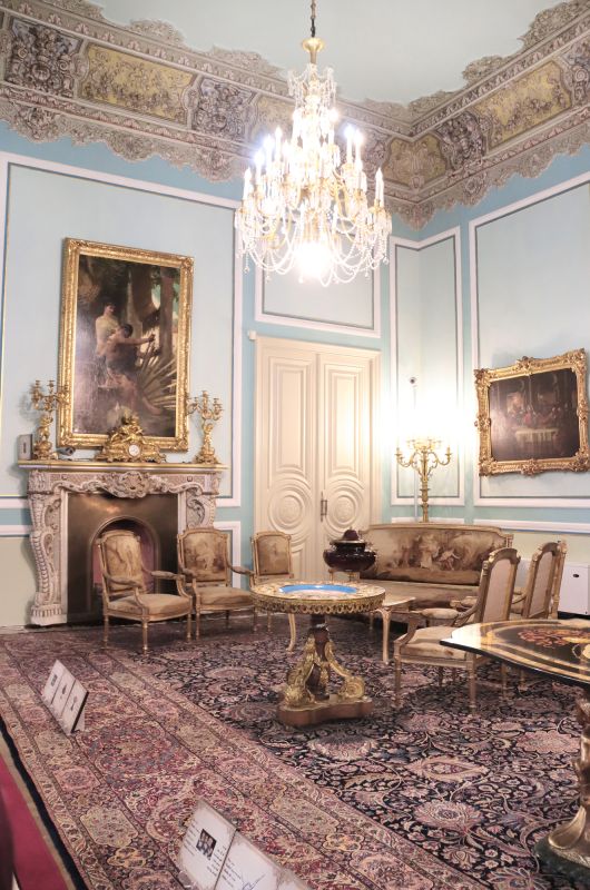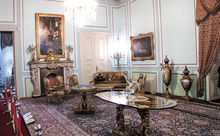 Во дворце есть центральный зал и несколько больших восточных и западных комнат. Мебель, люстры, подсвечники, письменный стол и другая декоративная утварь, старая как династия Пехлеви I, наряду с лепниной потолка и камином вызывает большой интерес у многих посетителей.