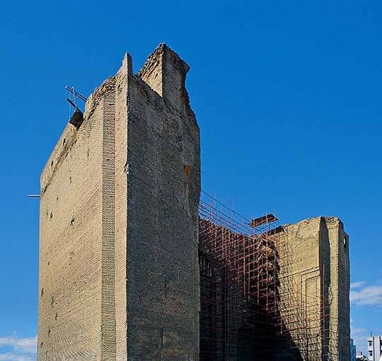 В центре города, с южной стороны улицы Имама Хомейни, возвышается высокая стена с михрабом, напоминающая нам об Иване Кисра. Названный Масджид Али-Шах, или Арг Тебриза, памятник был построен в восьмом веке хиджры по приказу Тадж ад-Дина Али-Шаха Гилани, министра Абу Саида Кана Бахадора, который был похоронен там, а архитектором был Мастер Фалаки Табризи. По словам некоторых историков, таких как Хамдалла Муставфи, они торопились построить здание, поэтому оно рухнуло и так и не было закончено. Однако его величие и украшения (мрамор и плитка) были настолько захватывающими, что многие путешественники или историки говорили о нем, например, Ибн Баттута, который был марокканским исследователем, Насер ад-Дин Китиб Монши, Катиб Чебли (который сопровождал султана Мурада четвертого в его путешествии в Тебриз), Жан Шарден, французский путешественник, и Дьелафуа, французский археолог.