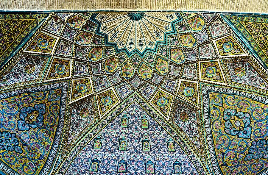 Проходя коридор, попадаешь в широкий двор, где центральный двор мечети занимает площадь 30*35 квадратных метров. Двор включает в себя четыре айвана, покои, проходы во внутренний двор, уборную и лестницу на крышу. Южный айван двора, считающийся входом в главный молитвенный зал, выше и наряднее трех других айванов. Над красивой плиткой мечети установлена надпись, включающая имя тогдашнего царя (Насер ад-Дин Шах), имя основателя мечети (имам Коли Мирза Эмад уд-Дулех) и дату строительства здания мечети (1285 г. хиджры).