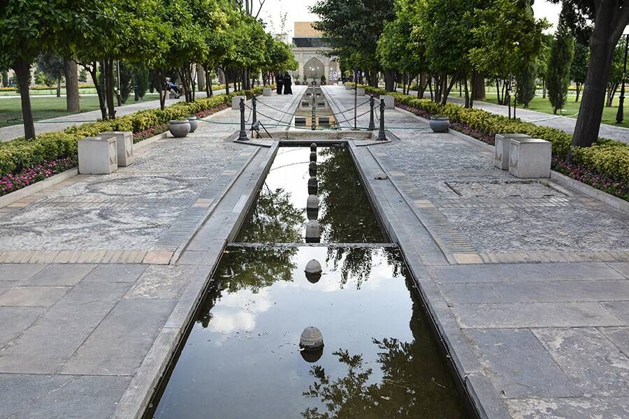 В центре сада есть музей старых рукописей и других государственных документов. Помимо кирпичной стены, которая построена как забор вокруг сада, по обеим сторонам улиц, ведущих к особняку, растут несколько столетних кипарисов. Растительность в этом саду состоит из кипарисов, сосен и апельсинов, что является одной из характерных черт Шираза. Сад расположен на большой площади квадратной формы, которая разделена на четыре другие площади. Улицы похожи на сетку, и все они ведут к павильону. Другими словами, особняк и беседка расположены посреди сада и считаются его ядром. Сад Джахан Нама, старейший сад Шираза, в настоящее время находится во владении городского радио и телевидения. Сад Джахан Нама расположен почти на въезде в Шираз между Воротами Корана и перекрестком Хафезия.