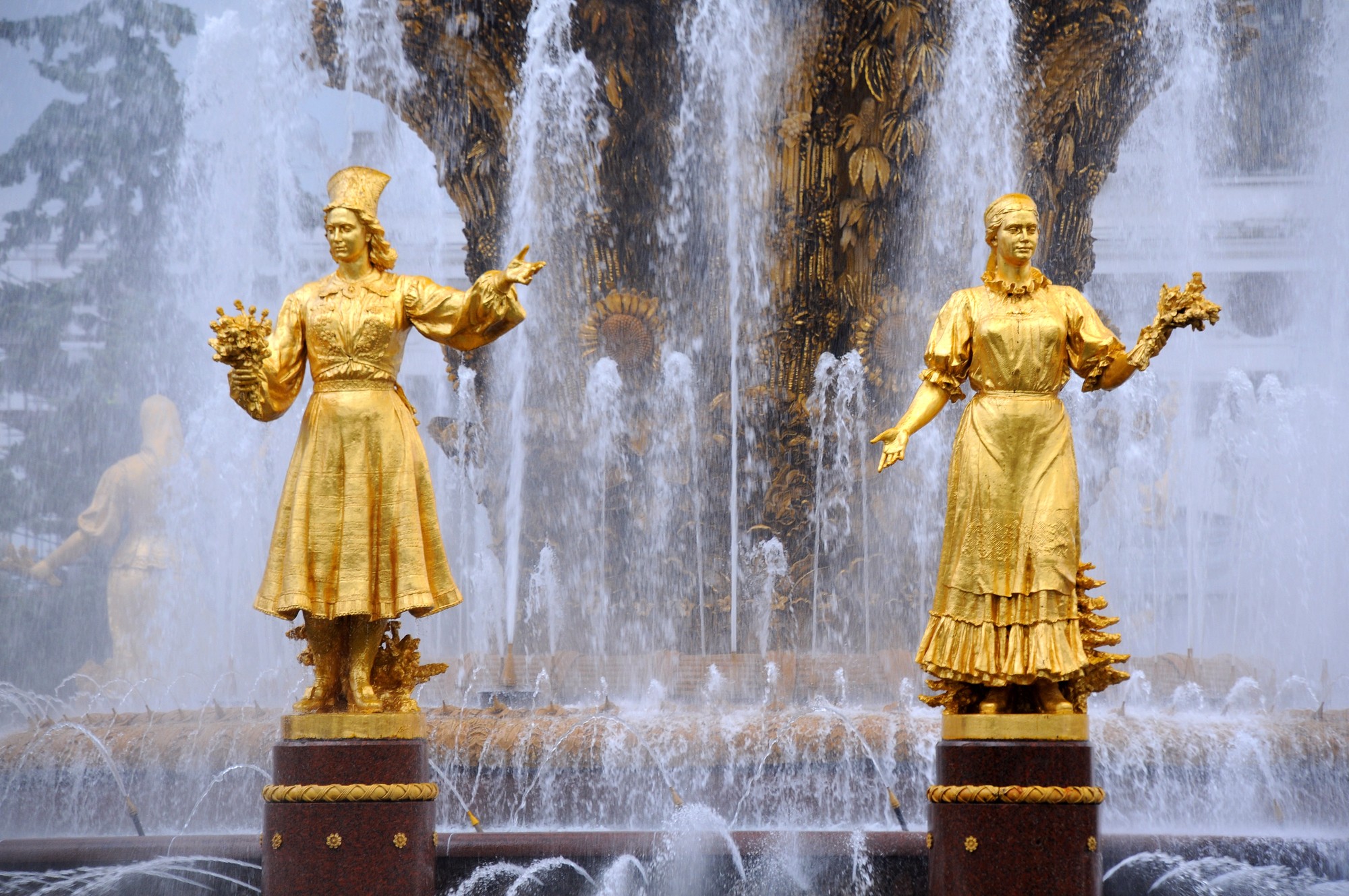 Фонтан «Дружба народов» – один из самых узнаваемых символов ВДНХ и всей советской эпохи. Он был открыт в 1954 году и с тех пор неизменно привлекает к себе внимание благодаря золотым статуям, олицетворяющим бывшие союзные республики. Каждая фигура облачена в национальный костюм и символизирует богатство традиций и культурное многообразие огромной страны. Роскошные украшения фонтана подчеркивают грандиозность выставочного комплекса, а бьющие ввысь потоки воды усиливают впечатление торжественности и праздничности.