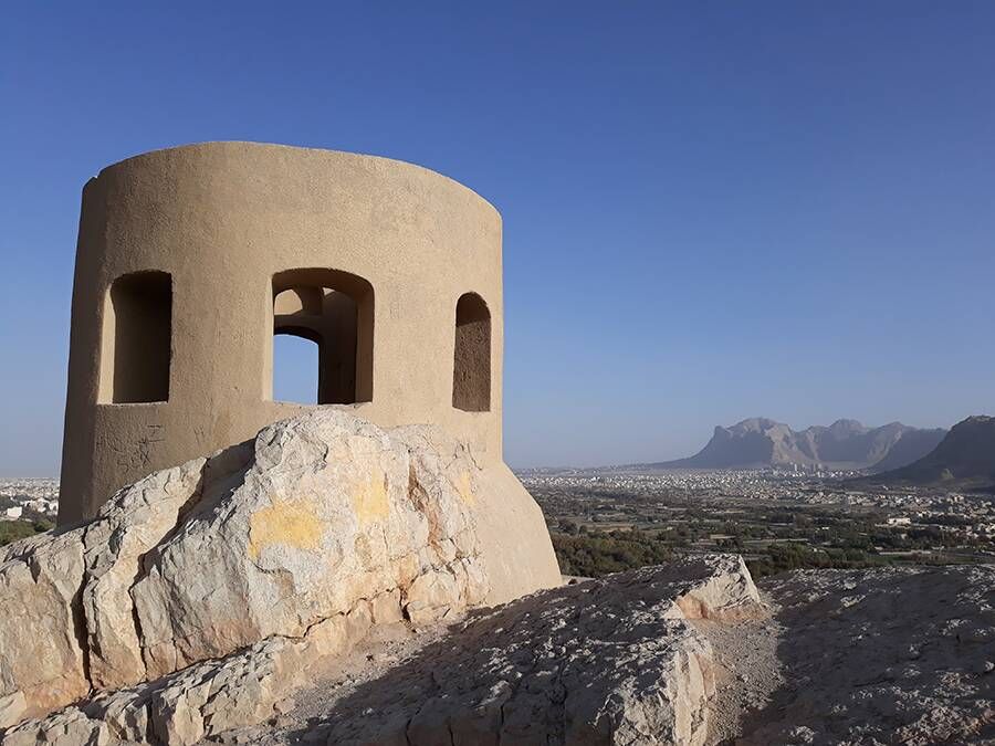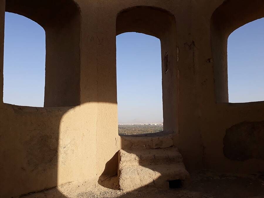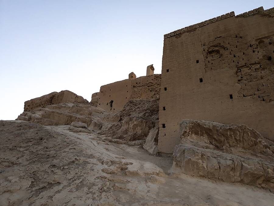 Способ устройства саманов в зубчатых стенах называется «Хашт о Гир». Стены сбалансированы. В северной части сооружения видно несколько комнат, соединенных между собой. Размер некоторых саманов 20 на 20 сантиметров. Также есть башня в самой высокой части каменного холма, еще сохранившаяся на севере восьмиугольного изнутри и круглого снаружи сооружения. Дверные проемы есть со всех сторон башни, а также в комнатах.