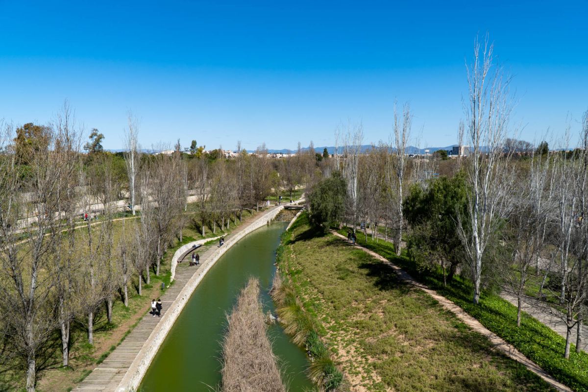 Парк занимает более километра территории бывшего русла реки Турия, в районе между окраиной города и окрестностями. Идея парка заключалась в том, чтобы превратить это пространство в прибрежный лес, типичный для окрестностей средиземноморских рек, сочетающий в себе растительность, рельеф и воду. Эта стратегия помогла разрешить переход между жесткими насыпями реки Турия, построенными в 18 веке для защиты города от внезапных наводнений, и естественным руслом реки вверх по течению. Вода, растительность, рельеф и сухие каменные стены — структурные особенности, на которых основана концепция парка.