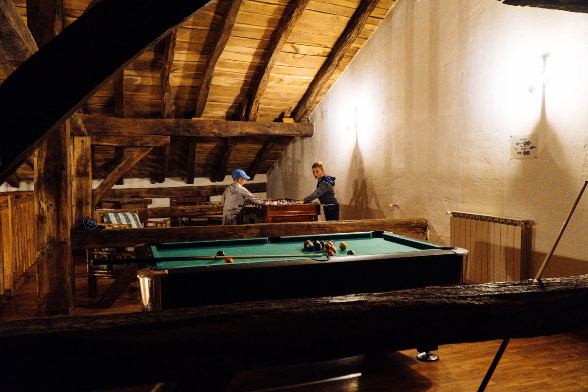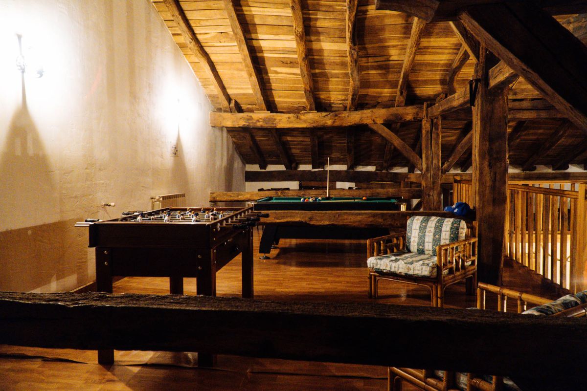 В загородном доме есть общая гостиная с камином, где гости могут отдохнуть после дня, проведенного на природе, а также полностью оборудованная кухня с посудомоечной машиной и духовкой. Во дворе есть барбекю и сад с прекрасным видом на горы.