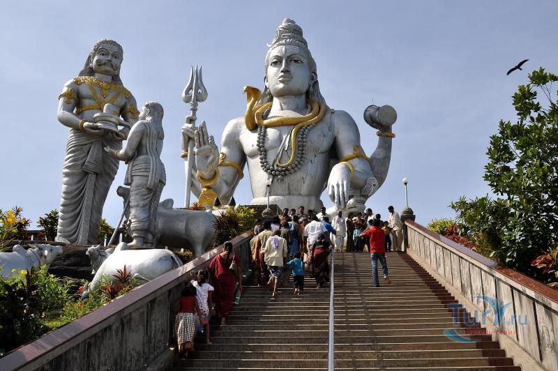 Вокруг башни расположен целый ряд скульптур и статуй, посвященных индийским Богам. Самая большая из них, высотой 37 метров, статуя изображающая Бога Шиву. Позолоченная скульптура буквально сияет, отражая солнечные лучи на фоне необычайно красивого моря.