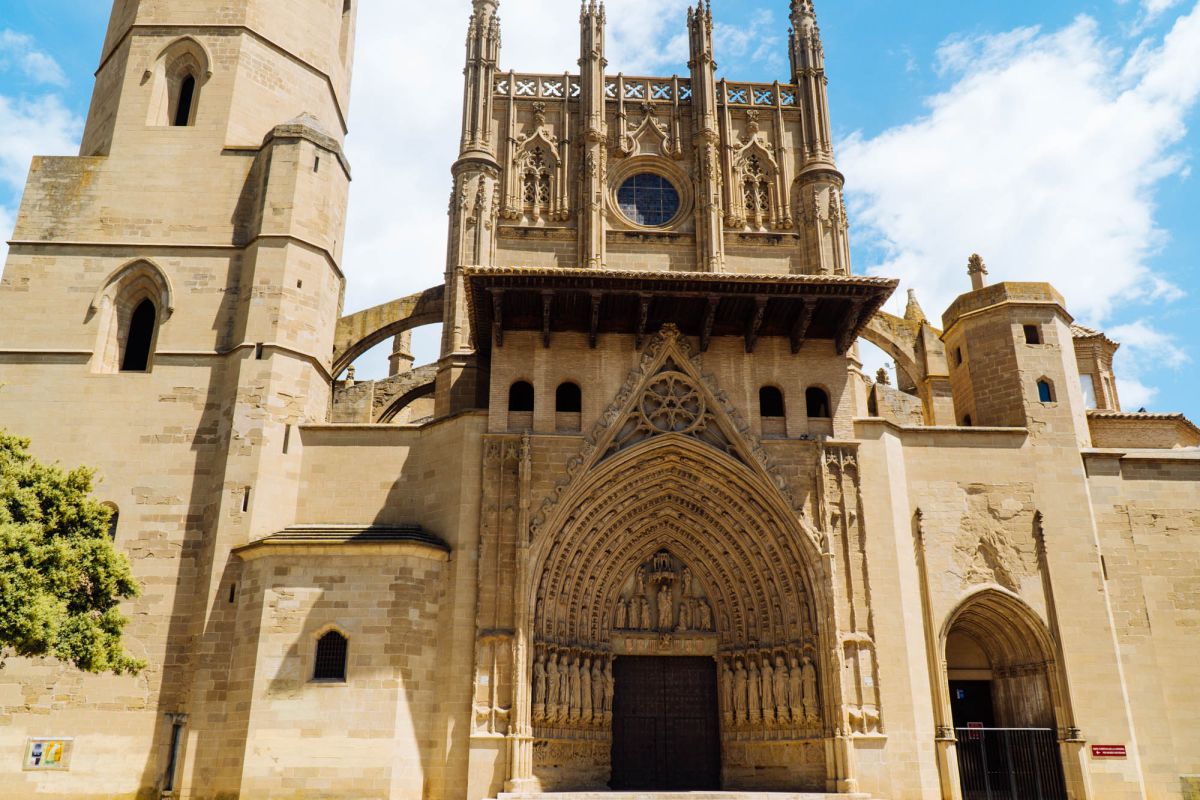 Это готический храм, построенный на месте древней мусульманской мечети. Хайме I Завоеватель приказал построить его в 1273 году. Вход вылеплен в мельчайших деталях и защищен большими карнизами, типично арагонскими. Карнизы были вырезаны из дерева и пристроены к входу в XVI веке. Нижняя часть состоит из различных примитивных готических стилей (XIII), а более яркая готика используется для верхней части (XVI). Фасад отличается великолепным декором, увенчанным шпилями. Главная входная дверь имеет семь резных арок. На тимпане можно увидеть изображения Богородицы и Младенца Христа. Собор имеет три нефа, трансепт и апсиду, а башня на фасаде квадратной формы, заканчивающаяся восьмиугольной конструкцией.
