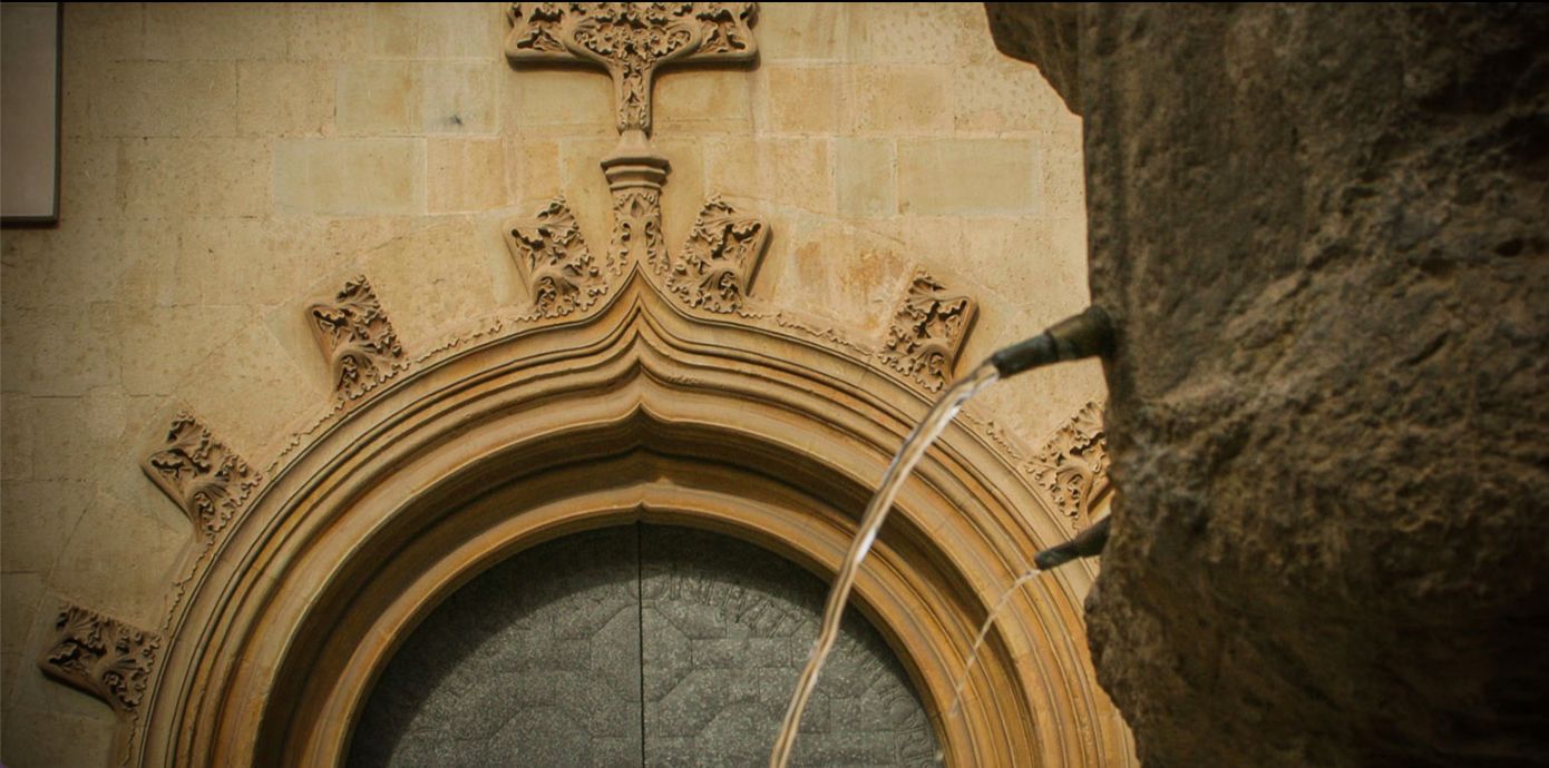 Фонтан Font de la Trinitat возвышается над площадью и является одним из немногих готических фонтанов, сохранившихся в Испании. Он датируется последней третью 15-го века, и первоначально полихромная восьмиугольная чаша показывает чередующиеся гербы города и королевства.