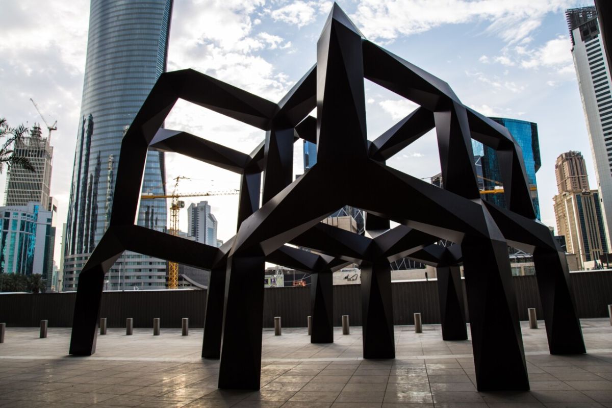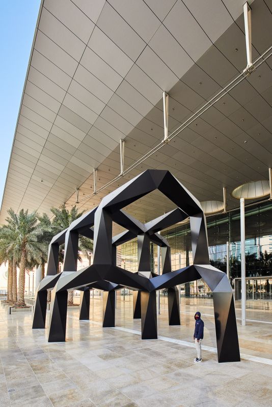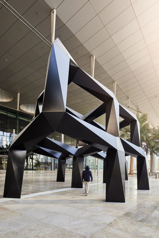 Smoke от Тони Смита находится у входа в выставочный и конференц-центр Дохи (DECC). Открытые и привлекательные, глубокие, но безмятежные, гигантские геометрические компоненты этой скульптуры высотой 24 фута доминируют над пространством.