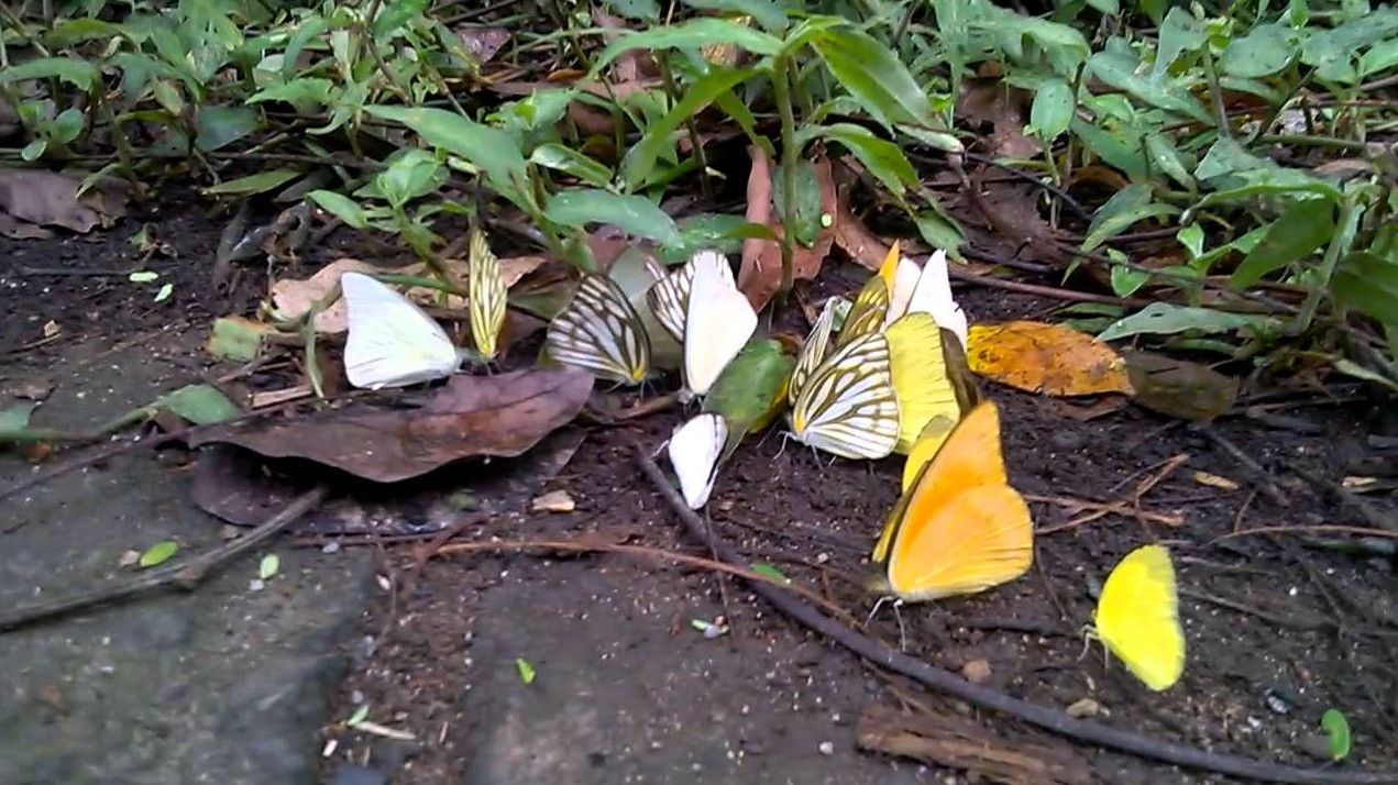 Весной по пути в лес туристов окружают миллионы желтых и синих бабочек.