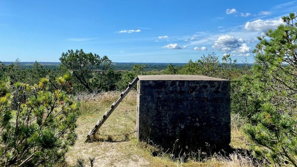 Вы найдете еще много отголосков войны в этом районе и плантациях дюн. Среди прочего, бункеры экипажа, бетонные фундаменты для пулеметных позиций и бетонные дороги.