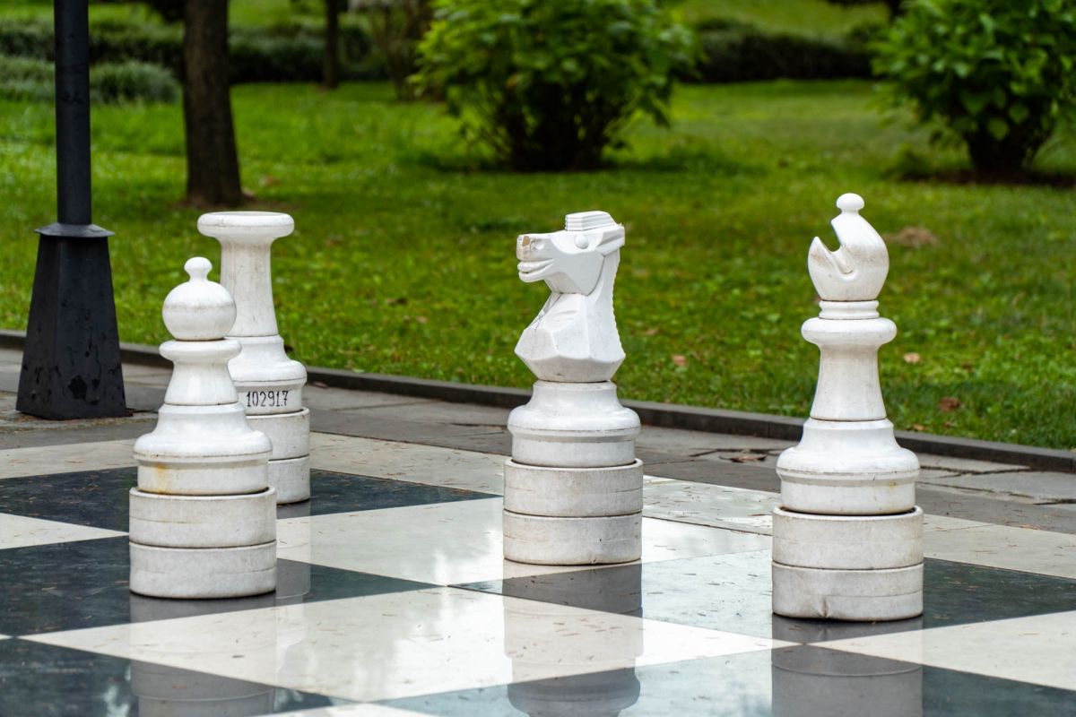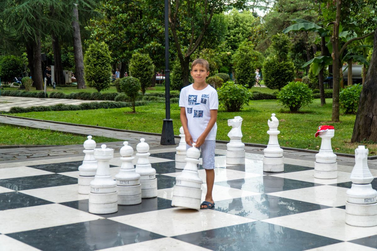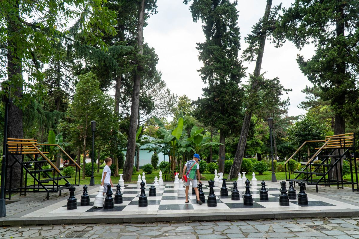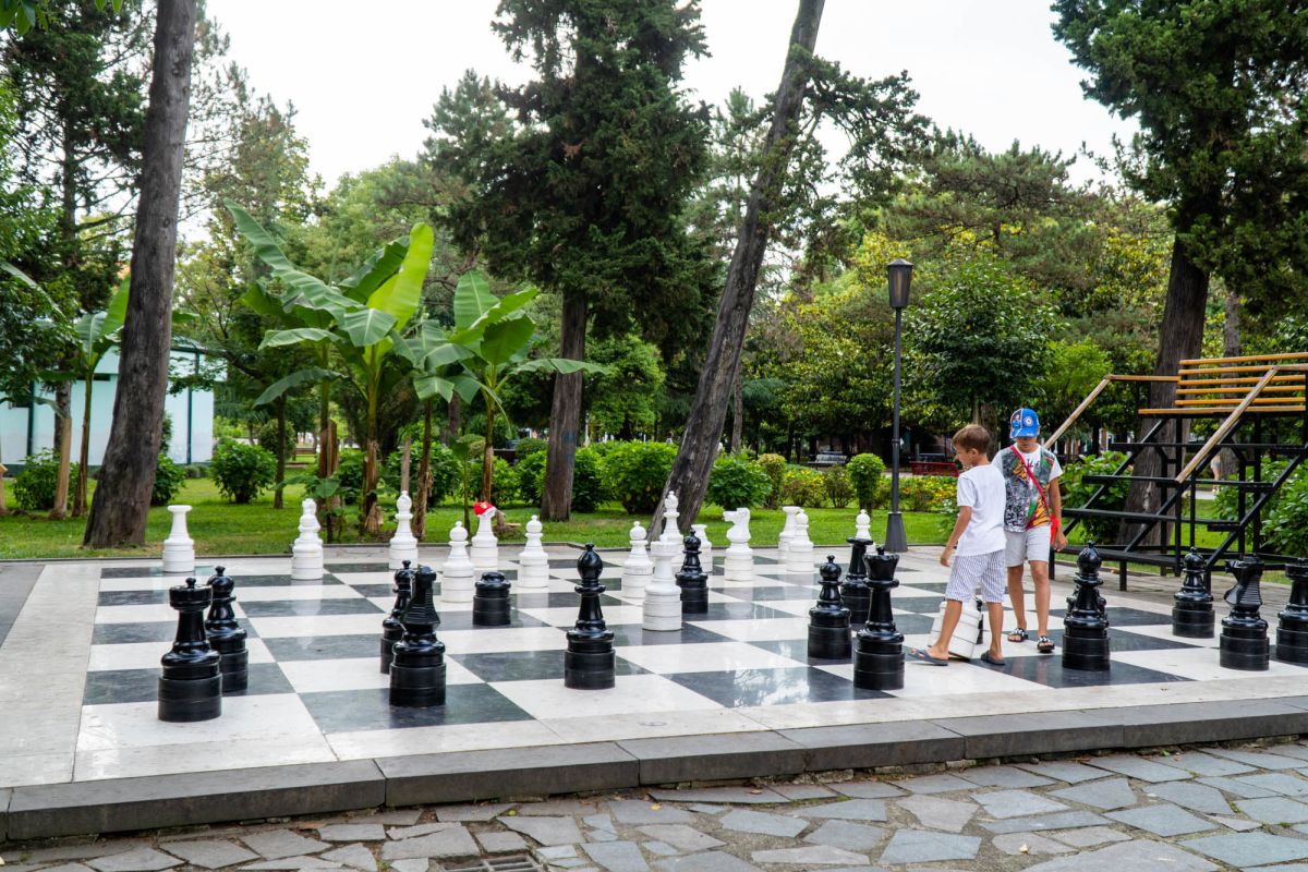 Гигантские шахматы в Батуми - это открытое пространство на набережной города, где каждый может сыграть партию в шахматы на огромных фигурах, выполненных вручную из камня.