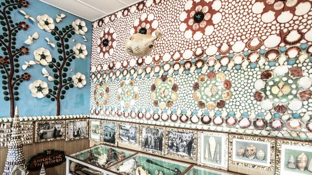 Работы по украшению дома начались в 1949 году и не были завершены до 1974 года. Уникальная достопримечательность украшена десятками тысяч раковин улиток и раковин в художественном оформлении.