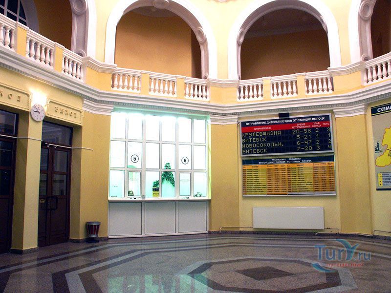 Многовековая история Полоцка донесла до нас плоды творческого гения народа — великолепные памятники архитектуры, литературы, изобразительного искусства. Среди них — здание железнодорожного вокзала. 24 мая 1866 года при большом стечении народа было открыто движение пассажирских поездов через станцию Полоцк Риго-Орловской железной дороги (Динабургской в то время). Здание Риго-Орловского вокзала было каменным, двухэтажным. На первом этаже располагались помещения для пассажиров, администрации, начальника станции, помощника начальника, телеграф, билетные кассы. На втором этаже — квартиры для начальника станции и других работников. Помещения для пассажиров разделены для I, II и III класса. На станции был устроен буфет и туалетная комната для дам. Таким было здание вокзала Полоцк в конце ХIХ века. В 1905 году к двухэтажному зданию на станции Полоцк были пристроены одноэтажные флигеры. В конце первого десятилетия ХХ века было открыто железнодорожное сообщение еще по одной дороге, ведущей из Бологого через Невель и Полоцк на Седлец. В связи с этим на окраине города был возведен второй просторный, двухэтажный железнодорожный вокзал — Николаевский — на станции Николаевской дороги (Громы). Полоцк превратился в узел важных железных дорог. В город прибывали пассажирские поезда из Двинска, Риги, Варшавы, Витебска, Москвы, Орла, Петербурга и Седлеца. Со временем здание Риго-Орловского вокзала несколько раз перестраивалось, в годы войны вокзал был полностью разрушен. Послевоенное здание вокзала Полоцк было сдано в эксплуатацию только в 1952 году. Здание 2-этажное, состоящее из центральной части и двух боковых — 1-этажных. В здании вокзала располагались билетные кассы, телеграф, зал ожидания, служебные помещения и кафе. С 1966 по 1998 год коллектив вокзала возглавляла Раиса Александровна Вежновец. Под ее руководством на вокзале Полоцк были внедрены в эксплуатацию билетопечатающая аппаратура системы «Экспресс 2» и билетопечатающие машины КР 1Ж «Символ», введено в эксплуатацию новое здание билетных касс. В 2002 году был закончен капитальный ремонт всего комплекса вокзала Полоцк. На платформе установили оригинальные светильники, новые информационные табло «Визинформ», с помощью которых пассажиры получают информацию об услугах, оказываемых на вокзале. В здании вокзала оборудованы 4 кассы по предварительной продаже билетов и 6 пригородных билетных касс. В их обустройстве использовались самые современные отделочные материалы. Цветные витражи отображают исторические места старого города. Подвесные люстры в вестибюле вокзала — светлые, прозрачные и создают уют и настроение. В новом здании билетных касс вход облицован гранитом, что придает зданию величественный вид. Внутри здания: лестничный марш, потолок и стены отделаны современными материалами. В одном стиле изготовлены киоски «Белсоюзпечать» и аптечный. Летом 2004 года начал работать фонтан в виде двух аистов, символизирующий гостеприимство и доброжелательность к жителям и гостям города. Сегодня вокзал Полоцка предоставляет пассажирам следующие виды услуг: