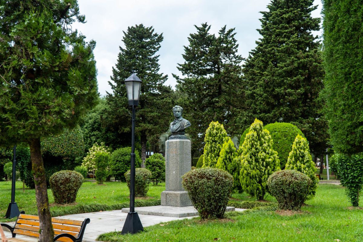 В парке отеля "Intourist Palace" в Батуми находится бюст Александра Пушкина, который был установлен в 1999 году к 200-летию со дня рождения поэта. Бюст представляет собой бронзовую скульптуру Пушкина на небольшом пьедестале и находится рядом с летним театром в парке. Это популярное место для фотографий среди туристов, которые посещают Батуми.