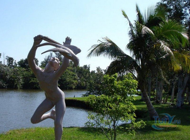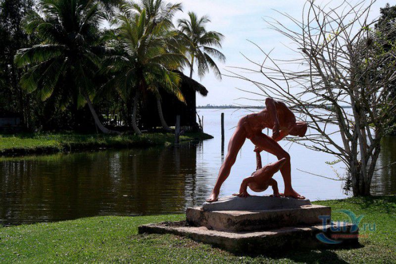 Индейская Деревня Гуама расположена на территории Национального парка Сапата (Parque Nacional Ciénaga de Zapata), на правом берегу озера Лагуна-дель-Тесоро. Индейцы из племени Таино жили в этих местах задолго до открытия Кубы Христофором Колумбом, аборигены занимались охотой, рыбной ловлей, возделывали землю. Строительство туристического курорта на озере Сокровищ (так называют Лагуну-дель-Тесоро), стилизованного под индейскую деревню, было инициировано кубинскими властями, работы контролировал сам Фидель Кастро. В создании курорта принимали участие архитекторы, историки, биологи, художники и строители из Гаваны и других городов страны. Были вырыты каналы, расчищены лагуна и протоки, через ручьи переброшены деревянные мостики, укреплены берега, высажены деревья и цветы, которые много веков назад росли в этих местах. В результате здесь была воссоздана самая настоящая индейская деревня, названная по имени вождя племени - Гуама. 44 индейские хижины на сваях построены из соломы и пальмовых листьев и со всех сторон окружены водой. Добраться в деревню можно только на лодке. Посетители, высадившись на берег, словно переносятся на несколько веков назад - здесь можно прогуляться среди индейских жилищ, заглянуть внутрь хижины и познакомиться с бытом аборигенов. Деревня "населена" индейцами Таино - по всей территории поселения расставлены глиняные статуи в натуральную величину, изображающие коренных жителей, занимающихся охотой, рыбной ловлей, добычей огня, приготовлением пищи и другими повседневными делами. На лужайке, рядом со скульптурами индейских женщин, готовящих еду, "резвятся" дети, здесь есть и воины, и охотники, и индейская старуха, и, даже, мечтатель. Автором композиции является известнейший кубинский скульптор Рита Лонга. На территории индейской деревни есть отель, ресторан, в котором можно отведать крокодильего мяса, сувенирный магазин и гончарная мастерская. Посетители могут стать зрителями костюмированных шоу, "современные Таино" готовы провести для гостей различные церемонии, среди которых посвящение в индейцев, общение с духами и свадебные обряды.
