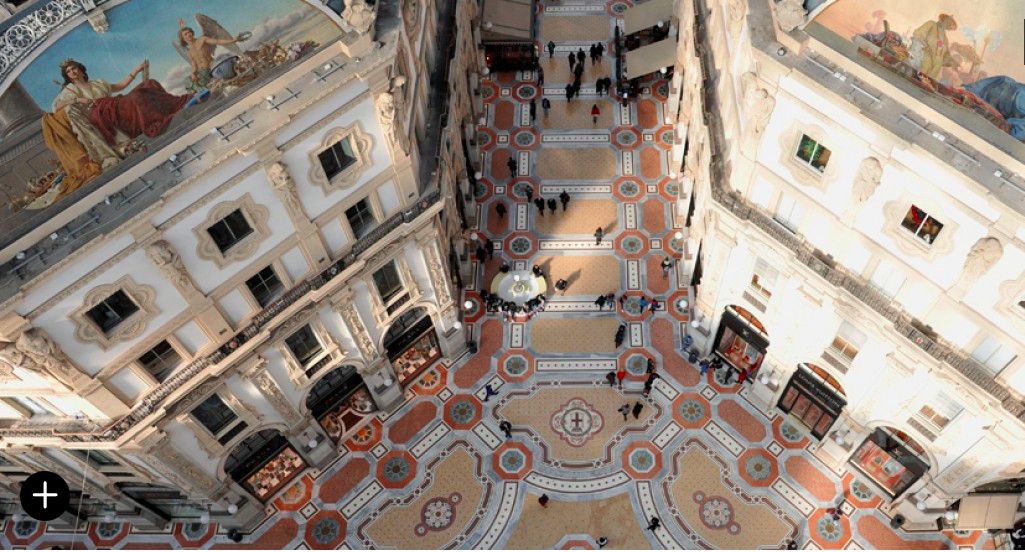 Галерея — старейший торговый центр Италии, красиво украшенный мозаикой и кариатидами вокруг окон и балконов, сохранил свой блеск. Магазины роскошных брендов в пассаже, которые могли бы легко конкурировать с магазинами на Виа Монтенаполеоне или Виа делла Спига, соседствуют с классическими ресторанами с белыми скатертями, закусочными знаменитых поваров, легендарными заведениями, такими как бар Camparino и культовый книжный магазин искусства Bocca, основанный в Галерее с 1930 года, но имевший значительное культурное присутствие в городе с девятнадцатого века.