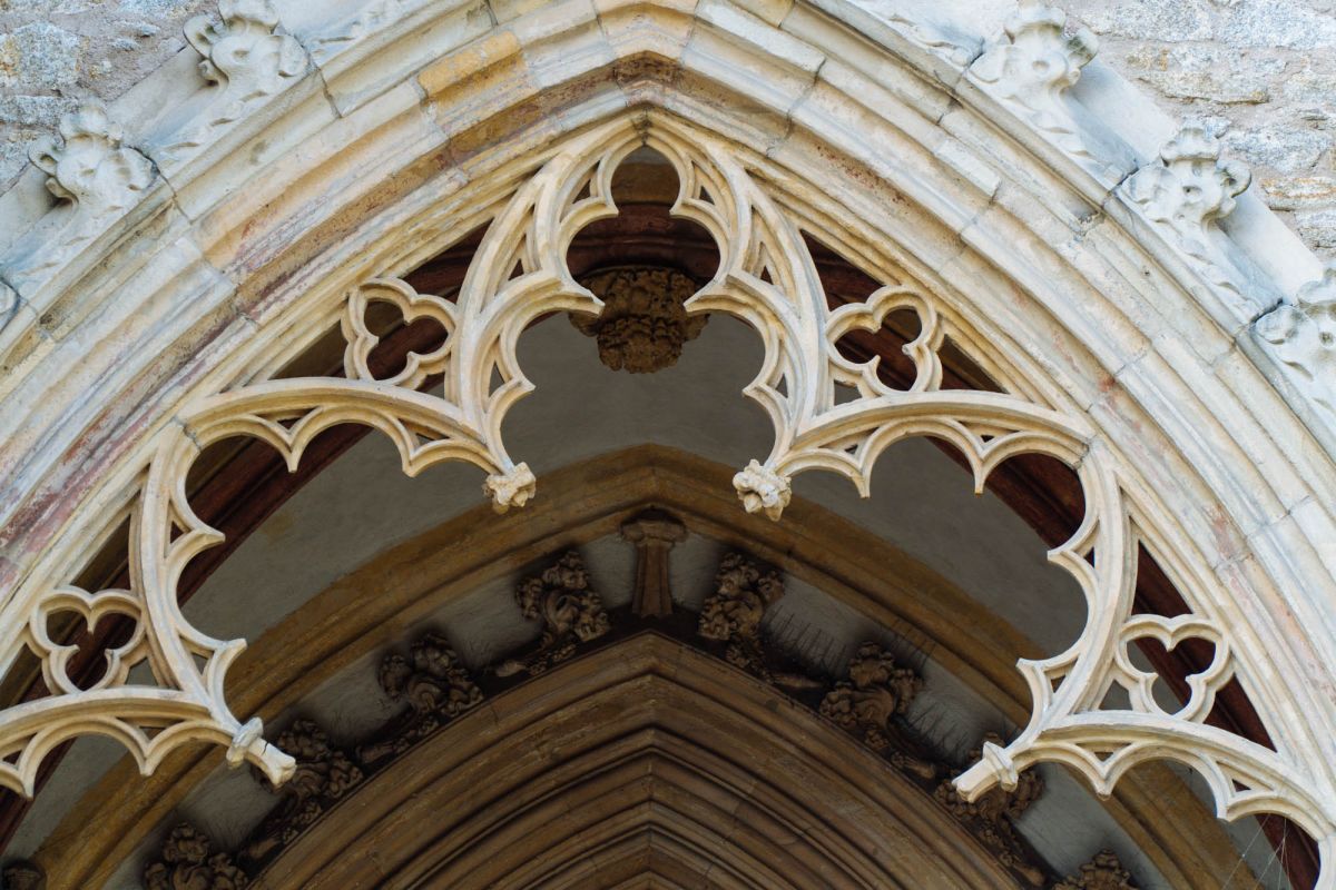 Трехнефная базилика была построена в плане латинского креста с трансептом и алтарем, последний заканчивался многоугольной апсидой. Стены церкви укреплены контрфорсами. Фасад подчеркнут двумя башнями. Северная башня достигает уровня торцевой стены, а южная так и не была достроена. Каменные фасады церкви были украшены архитектурными и скульптурными деталями из песчаника, в том числе горгульями, скульптурными человеческими головами, листвой и геометрическими украшениями на фризах, расположенных под карнизами. Входы в церковь подчеркнуты богато украшенными скульптурными порталами. На орнаментальном фронтоне западного портала (XIV в.) размещены изображения Страшного суда со статуей Христа как судьи мира и изображения Божией Матери и св. Иоанна Богослова. Это единственный сохранившийся в Силезии пример фигурного декора декоративного фронтона, окружающего портал. В тимпан встроен грандиозный ансамбль рельефов и отдельно стоящих скульптур, расположенных в два ряда и образующих визуальное повествование, рассказывающее историю обращения святого Павла на пути в Дамаск. Портал певцов, найденный в венском соборе Святого Стефана, по-видимому, был образцом, на котором базировалось это представление, как с точки зрения его идеологического выражения, так и, в некоторой степени, с точки зрения формы. Скульптурная композиция, разделенная на две отдельные области, также украшает тимпан северного портала (15 век), на котором изображено Коронование Богородицы, а в его нижней части - Коронация Вирсавии Соломоном и Есфири Артаксерксом. Внутри тимпана южного портала (ок. 1400 г.) можно полюбоваться сценой Смерти Девы Марии.