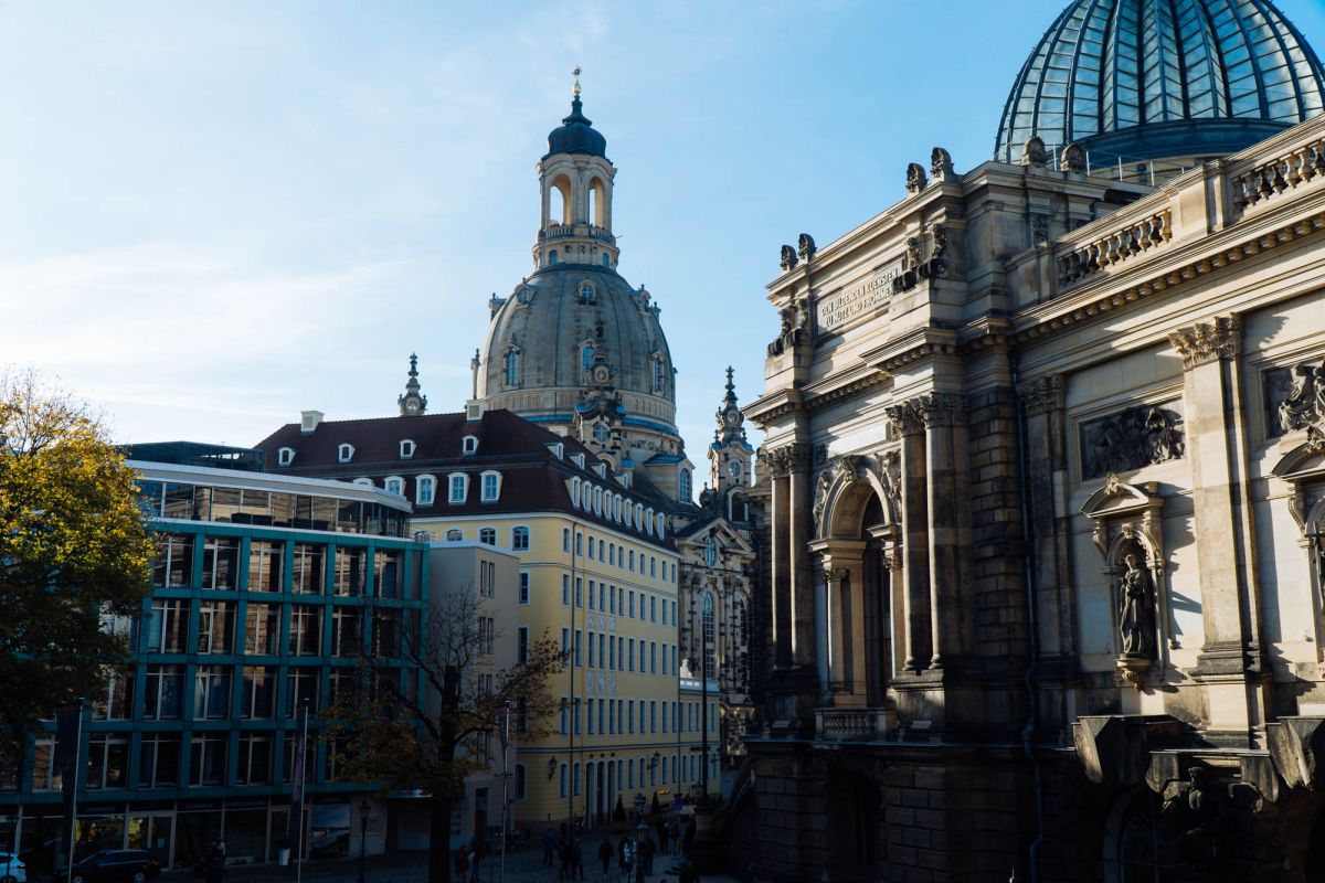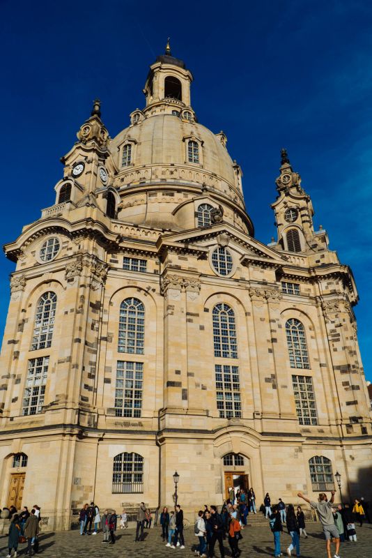 Фрауэнкирхе — уникальное сооружение. Она считается символом протестантского церковного строительства, в котором протестантское понимание веры и богослужения находит архитектурное воплощение. Центральное здание, построенное в 18 веке, с его парящим дизайном, эффектным колоколообразным куполом и венчающим каменным фонарем было реконструировано в соответствии с оригиналом и теперь снова формирует горизонт Дрездена.