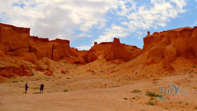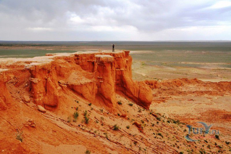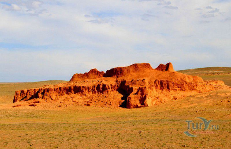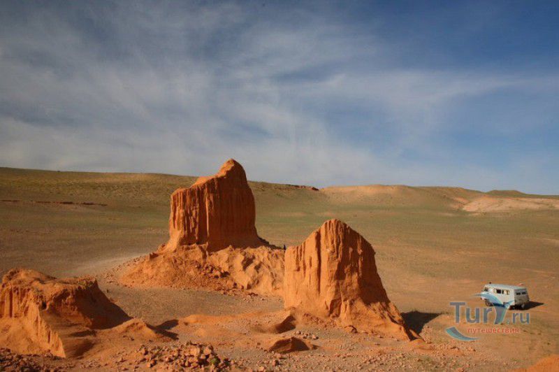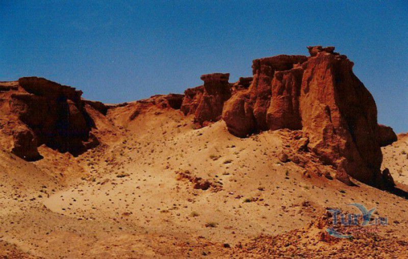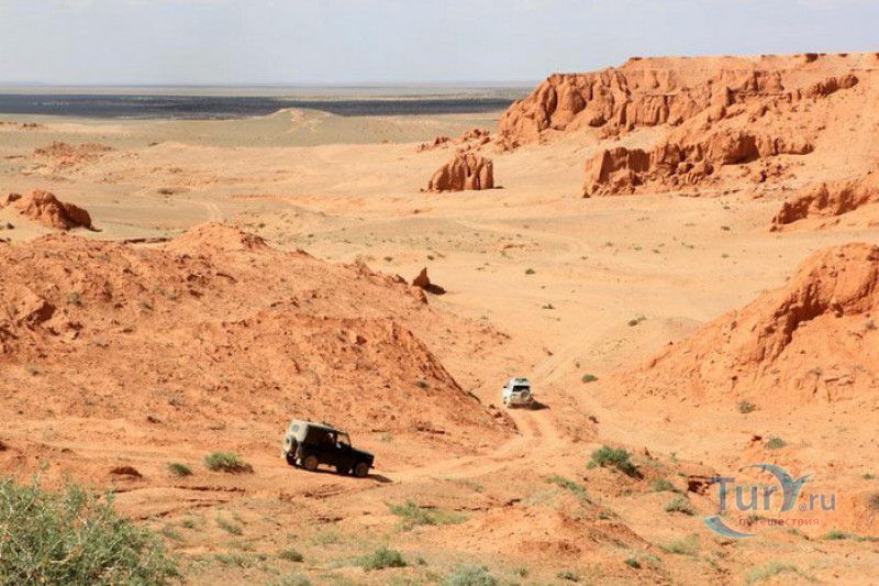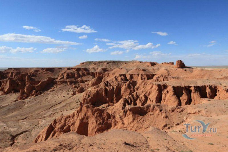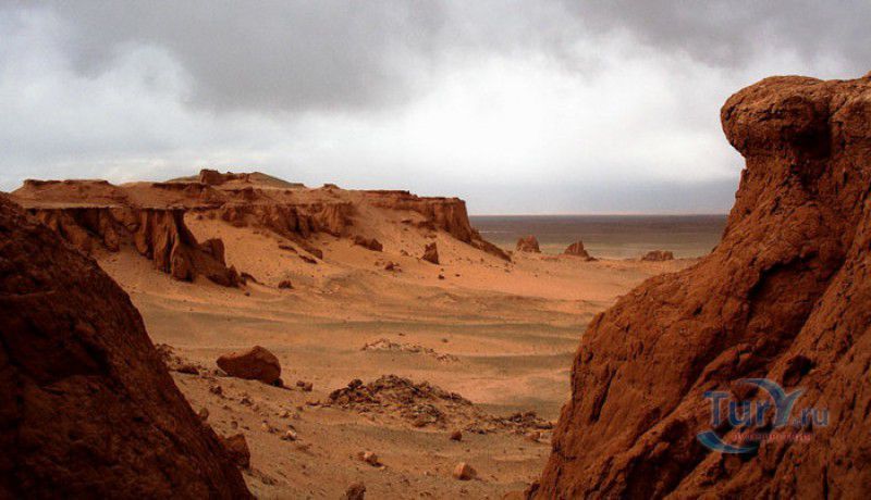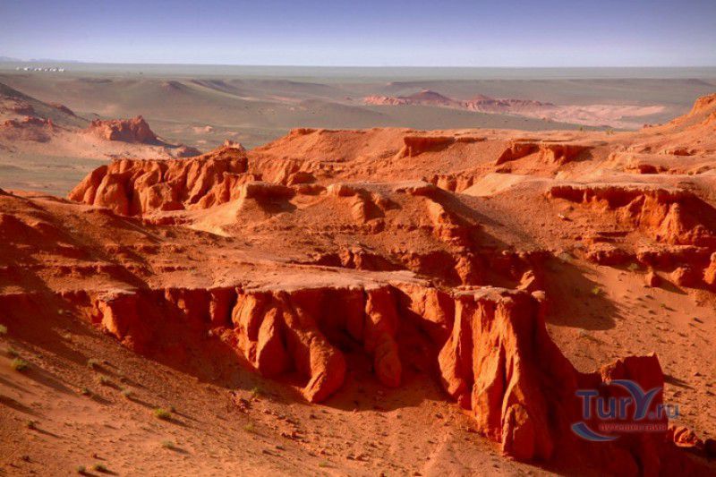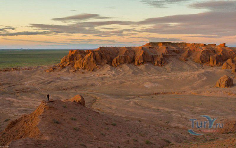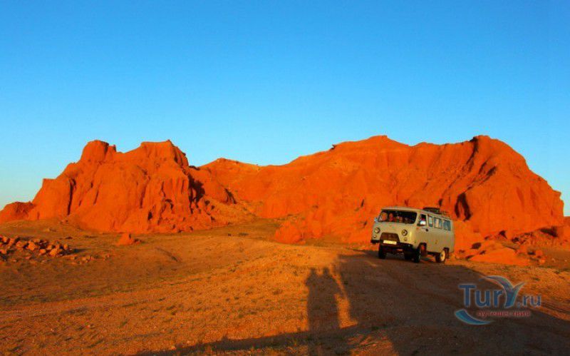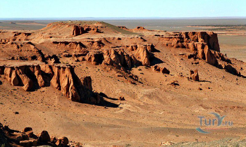 Скалы Баянзаг (Пылающие Скалы) расположены на юге Монголии, в провинции Умнеговь, в пустыне Гоби, в 90 километрах к северо-западу от города Даланзадгад. В переводе с монгольского Баянзаг означает "богатые саксаулом", так местные жители назвали эти скалы из-за обильно растущего на их склонах колючего кустарника (любимого лакомства верблюдов). Пылающими их назвал американский палеонтолог Рой Чепмен Эндрюс из-за красно-оранжевого цвета песчаника, из которого эти скалы сложены. В лучах восходящего солнца и на закате скалы словно пылают, охваченные огнём. Но не только красивые виды привлекают сюда туристов - Баянзаг является одним из самых знаменитых палеонтологических захоронений в мире. В 1920-х годах экспедиция Американского музея естественной истории, возглавляемая Эндрюсом, обнаружила здесь гнездо с окаменелыми яйцами динозавра Теропода овираптора (внутри одного яйца учёные обнаружили остатки зародыша), а также окаменелые останки хищного динозавра Велоцираптора и плацентарных млекопитающих, населявших эти места 60-80 миллионов лет назад. Эти находки произвели сенсацию в мировом научном сообществе. Экспедиции следовали одна за другой, палеонтологами были обнаружены кости и черепа динозавров, некоторые виды которых до этого времени науке были неизвестны. Туристам, посещающим Баянзаг, и сейчас местные торговцы предлагают "совсем недорого" яйца, кости динозавров и окаменелости доисторических животных. Однако, следует помнить, что ещё в середине XX века в Баянзаге палеонтологами были извлечены из земли все ценные находки, а, кроме того, незаконная торговля и вывоз окаменелостей динозавров за пределы Монголии строго запрещены и могут грозить, в лучшем случае, огромными штрафами. Но красота этих мест никуда не исчезла - вот как описывал Баянзаг писатель-фантаст и палеонтолог Иван Ефремов, побывший здесь с экспедицией в конце 1940-х годов: "И все же ни с чем не сравнимую, совершенно фантастическую картину представляла котловина вечером, минут за десять до захода солнца. Круглые обрывы изъеденных ветром древних песчанистых отложений полыхали ярко-красным пламенем. Казалось, вся котловина превратилась в море огня. Этот неожиданный эффект объяснялся просто: лучи заходящего солнца освещали древние красноцветные песчаники стен котловины и останцы, создавая совершенно реальное представление "пылающих скал"".