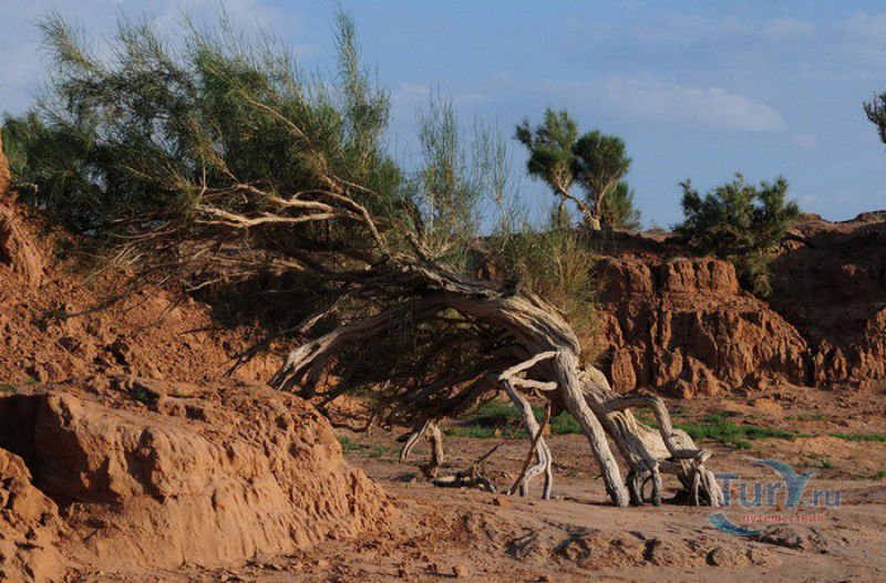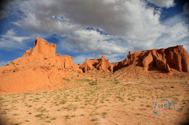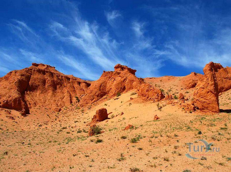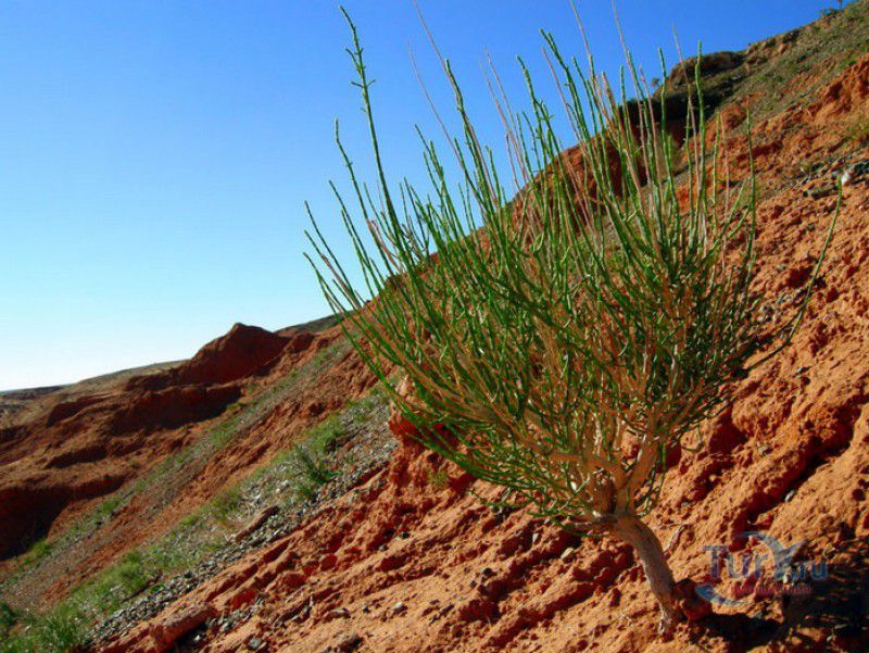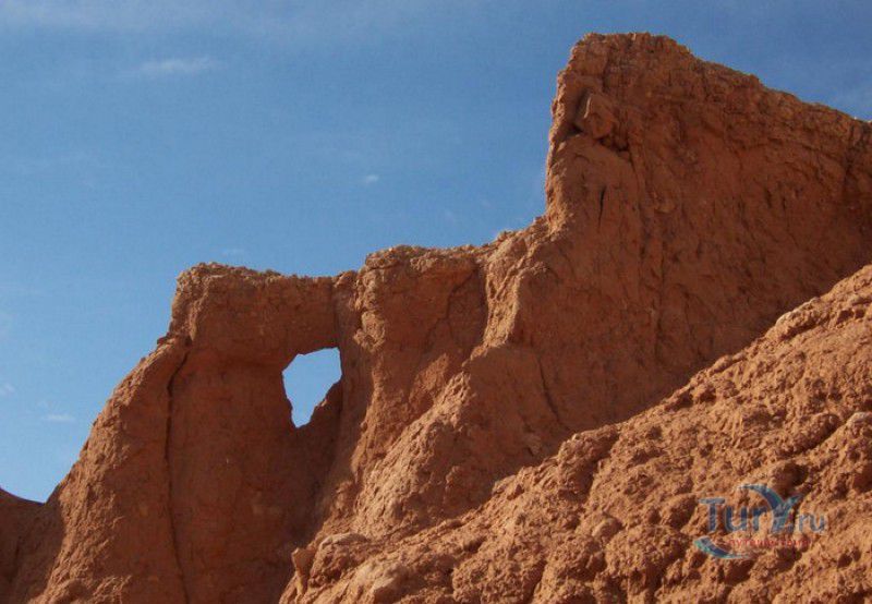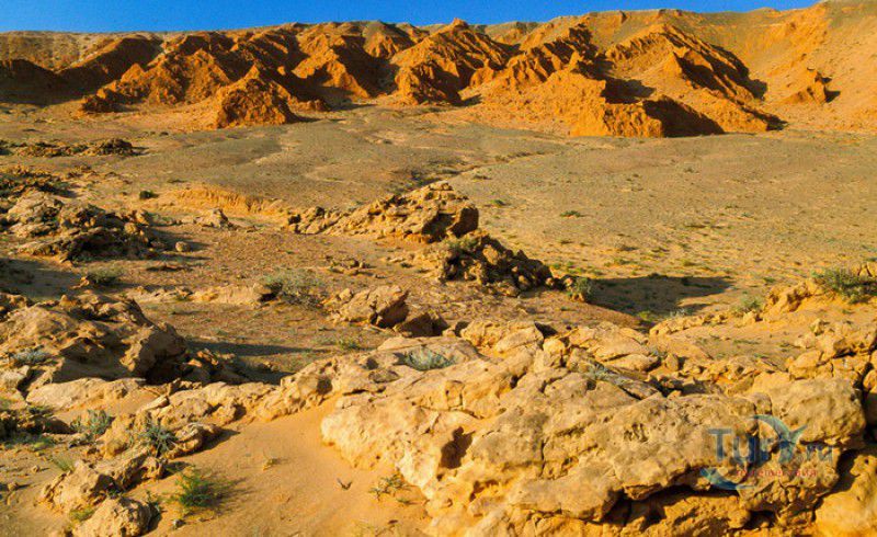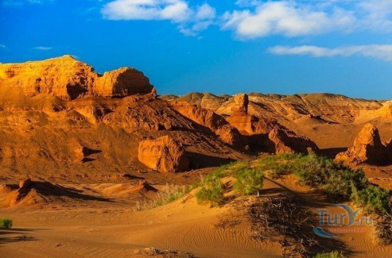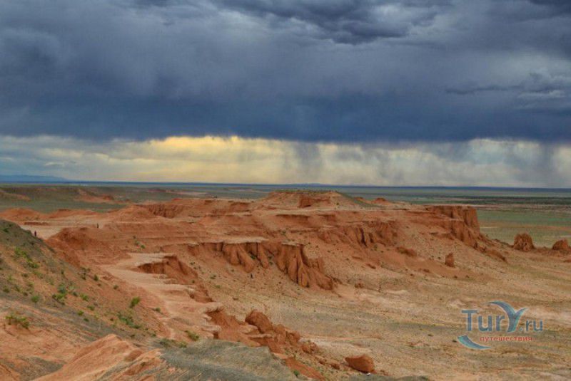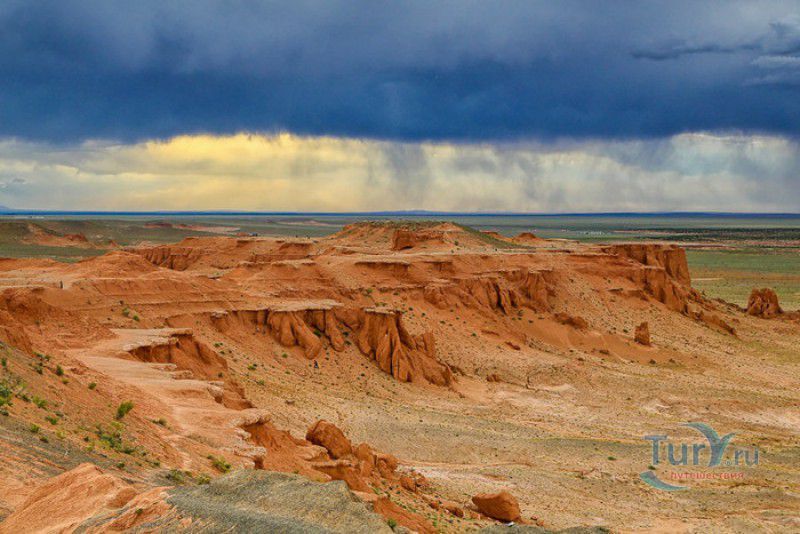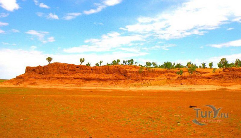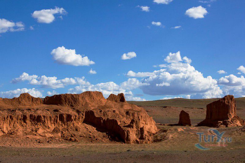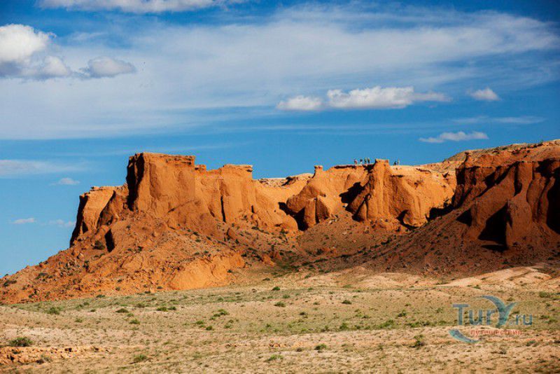 Скалы Баянзаг (Пылающие Скалы) расположены на юге Монголии, в провинции Умнеговь, в пустыне Гоби, в 90 километрах к северо-западу от города Даланзадгад. В переводе с монгольского Баянзаг означает "богатые саксаулом", так местные жители назвали эти скалы из-за обильно растущего на их склонах колючего кустарника (любимого лакомства верблюдов). Пылающими их назвал американский палеонтолог Рой Чепмен Эндрюс из-за красно-оранжевого цвета песчаника, из которого эти скалы сложены. В лучах восходящего солнца и на закате скалы словно пылают, охваченные огнём. Но не только красивые виды привлекают сюда туристов - Баянзаг является одним из самых знаменитых палеонтологических захоронений в мире. В 1920-х годах экспедиция Американского музея естественной истории, возглавляемая Эндрюсом, обнаружила здесь гнездо с окаменелыми яйцами динозавра Теропода овираптора (внутри одного яйца учёные обнаружили остатки зародыша), а также окаменелые останки хищного динозавра Велоцираптора и плацентарных млекопитающих, населявших эти места 60-80 миллионов лет назад. Эти находки произвели сенсацию в мировом научном сообществе. Экспедиции следовали одна за другой, палеонтологами были обнаружены кости и черепа динозавров, некоторые виды которых до этого времени науке были неизвестны. Туристам, посещающим Баянзаг, и сейчас местные торговцы предлагают "совсем недорого" яйца, кости динозавров и окаменелости доисторических животных. Однако, следует помнить, что ещё в середине XX века в Баянзаге палеонтологами были извлечены из земли все ценные находки, а, кроме того, незаконная торговля и вывоз окаменелостей динозавров за пределы Монголии строго запрещены и могут грозить, в лучшем случае, огромными штрафами. Но красота этих мест никуда не исчезла - вот как описывал Баянзаг писатель-фантаст и палеонтолог Иван Ефремов, побывший здесь с экспедицией в конце 1940-х годов: "И все же ни с чем не сравнимую, совершенно фантастическую картину представляла котловина вечером, минут за десять до захода солнца. Круглые обрывы изъеденных ветром древних песчанистых отложений полыхали ярко-красным пламенем. Казалось, вся котловина превратилась в море огня. Этот неожиданный эффект объяснялся просто: лучи заходящего солнца освещали древние красноцветные песчаники стен котловины и останцы, создавая совершенно реальное представление "пылающих скал"".