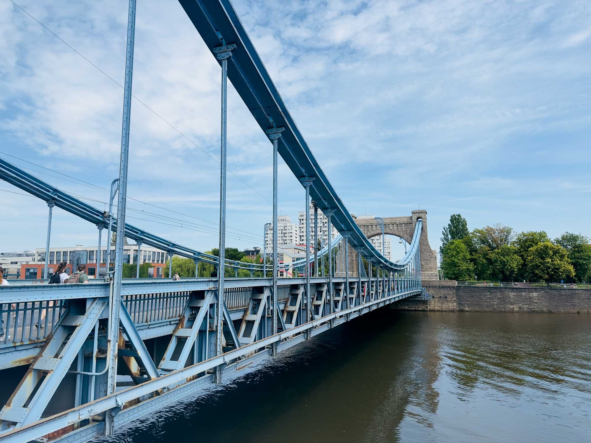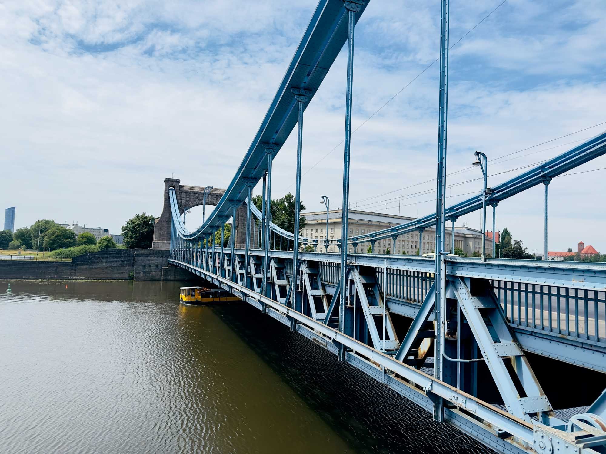 Грюнвальдский мост — один из самых узнаваемых символов Вроцлава, соединяющий берега Одры между центром города и районом Plac Grunwaldzki. Этот висячий мост из стали и гранита, длиной 112,5 метра, был открыт в 1910 году и до сих пор поражает как инженерной элегантностью, так и архитектурной выразительностью.