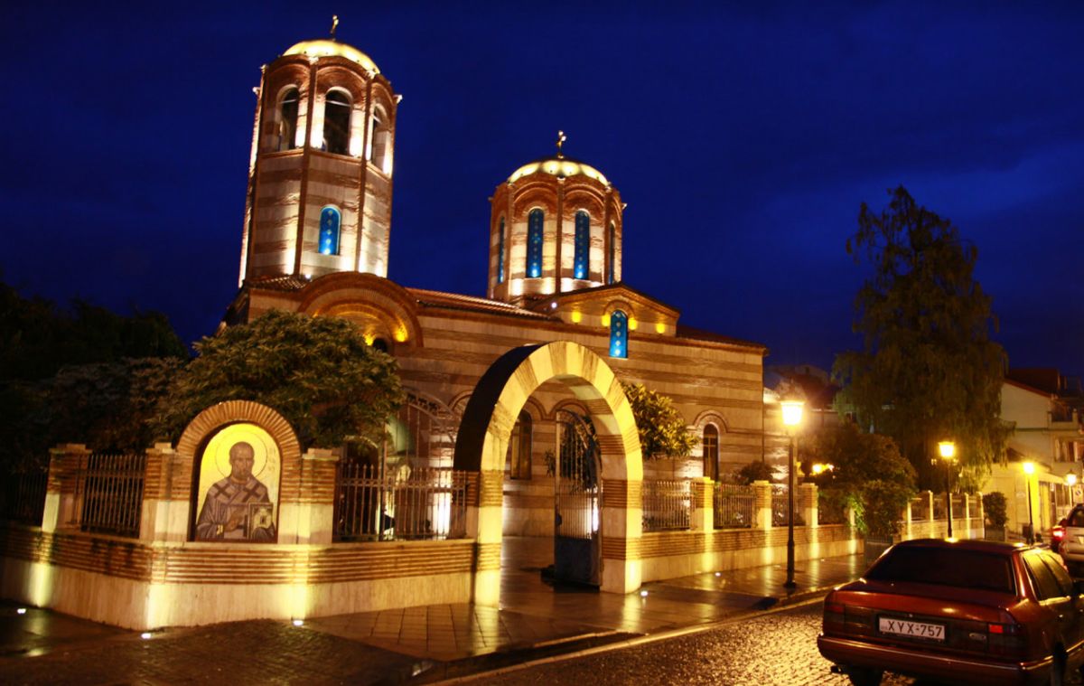 Фундамент церкви был заложен в 1865 году. Строительство велось на деньги прихожан и горожан города, большой вклад внес российский вице-консул Джудич. Первая служба в церкви была проведена в год окончания строительства - 1871 году, однако до сих пор не известно, кто провёл в этой греческой церкви первую литургию. Также неизвестно и о том, кто именно освятил эту церковь. В 1878 году в церкви был установлен колокол, который до сегодняшнего дня украшает купол собора.