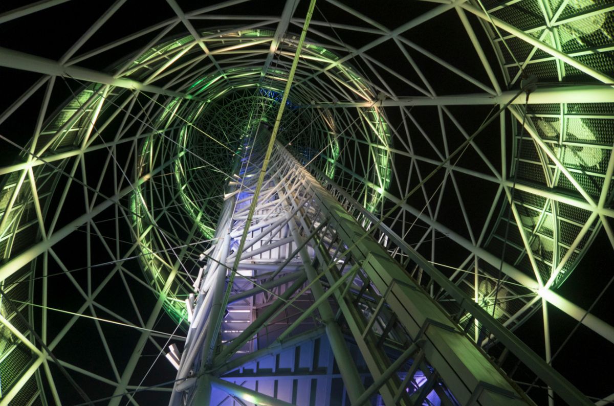 Высота сооружения - 130 метров, построено оно полностью из металла. Такую башню сложно не заметить. Лестница в этом строении не предусмотрена, поэтому подняться в верхнюю часть можно исключительно на лифте, который представляет собой удобную для обзора стеклянную конструкцию. В верхней части этой башни расположены обсерватория, телевизионная студия, а также ресторан на вершине сферического купола, который вращается вокруг своей оси. Полный оборот он совершает в течение 60 минут.