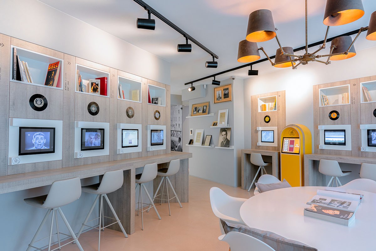 Посетители также могут узнать о его карьере певца и актера в нашем кинотеатре Ciné Brel. 5 показов в день, включая мифический концерт «Les Adieux à l'Olympia» 1966 года.