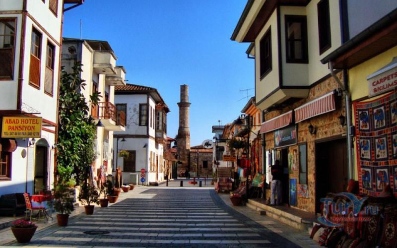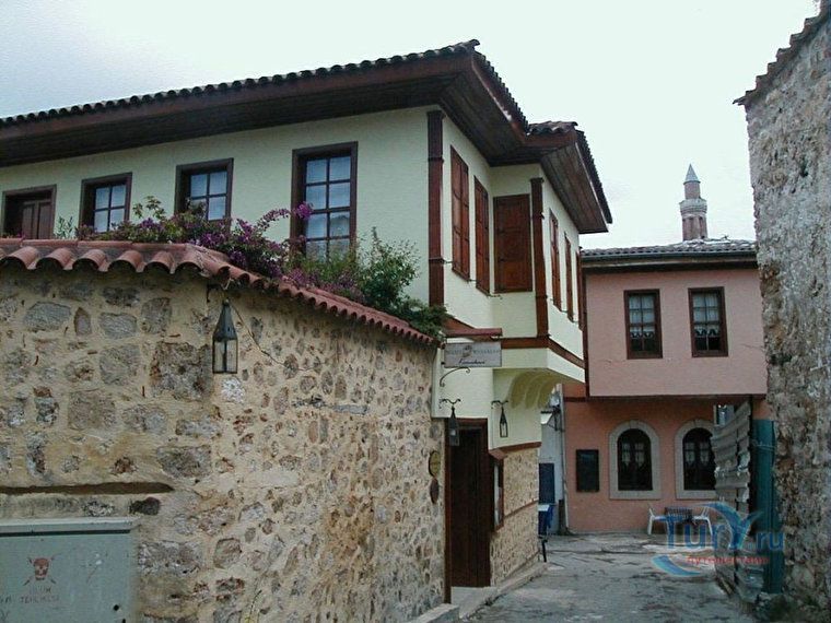 12. Музей Суны и Инана Кырач в Анталье. Музей является отреставрированным архитектурным комплексом на месте двух ветхих зданий. Эти два здания, относящихся к памятникам культуры и подлежащие защите государства, были приобретены супругами Суной и Инаном Кырач. Реставрация первоначального вида зданий проводилась с 1993 по 1995 год. Музей состоит из двух совершенно разных зданий. Первое здание является поздним примером османской архитектуры, состоит из двухэтажного жилого дома с традиционным турецким открытым двориком (авлу). В нем располагается этнографическая часть музея, посвященная жизни Калеичи 2-й половины 19 века. На втором этаже здания в первом зале расположены старинные фотографии Калеичи, а также транслируется документальный фильм об истории города. Там же расположены восковые фигуры играющих детей. Еще три комнаты с восковыми фигурами знакомят посетителей с традициями свадебных церемоний. В первой комнате гости пьют кофе с цитрусовым джемом, пока мать невесты разглядывает приданое. Во второй комнате бреют жениха. В третьей комнате невесту готовят к брачной ночи. В каждой комнате играет соответствующая музыка. Второе здание когда-то было церковью святого Георгия (о чем свидетельствует надпись над дверями - Agios Georgious), затем заброшенным складом. Над дверьми здания есть барельеф с изображением Георгия Победоносца, поражающего змея и надпись на караманском диалекте турецкого языка греческими буквами. Согласно этой надписи, церковь существовала уже долгое время до того, как анталийские христиане отреставрировали ее в 1863 году. Теперь в здании располагается отреставрированный выставочный зал. В этом зале на обозрение представлено письмо от Инана своей жене, в котором говорится, что эту церковь он купил Суне в подарок для организации в ней музея имени Суны. В здании церкви располагается выставка народных ремесел, а на балконе — экспозиция, посвященная уличной торговле (подъем на балкон осуществляется по внешней винтовой лестнице). В экспозиции представлены фотографии и керамические фигурки уличных торговцев и ремесленников (в том числе реальных персонажей). Сразу у входа есть стенд с кнопками, нажав на которые можно прослушать голоса уличных торговцев. Выставочный зал открыт с 9 до 12 и с 13 до 18 часов ежедневно, кроме среды. Вход — 3 лиры.