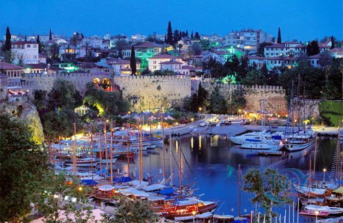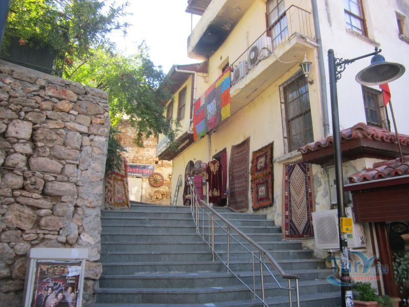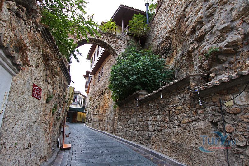 6. Городские стены и Часовая башня в Калейчи Саат Кулеси. На первом месте среди исторических памятников Антальи стоя городские стены, сохранившиеся до сегодняшних дней. Стены построены в форме подковы, окружая гавань и древний город внутри них. Они были построены во 2-м столетии н.э. в Эллинийский период и постоянно подвергались изменениям почти в каждом последующем периоде. Из надписей на стенах известно, что сельджуки, в частности, внесли серьезные изменения, выполнили ремонт большей части городской стены и добавили башни для того, чтобы привести стены в соответствии со своими собственными понятиями военной стратегии. В записях путешественника Эвлия Челеби, жившего в период Османской империи, упоминается, что во время его посещения Антальи в 1671 году стену украшали 80 башен вдоль стены, а окружность городской стены составляла 4400 шагов, в окрестностях стены были узкие улицы, на которых располагалось почти 3000 домов.