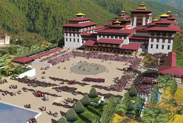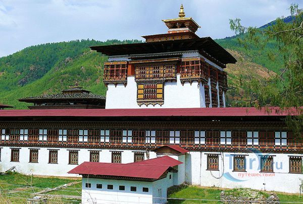 Ташинчхо-дзонг – красивейшая крепость-монастырь, королевская Резиденция. "Ташинчхо-дзонг" - означает "Крепость Благословенной Религии". Монастырь был построен в 1216 году Ламой Гьялва Лхананпой, а в 1640 гду перестроен и значительно расширен Шабдрунгом Нгавангом Намгуалом. Это самый большой монастырь в стране. Он рассчитан на 2000 монахов. Три раза крепость страдала от огня, и один раз серьезно пострадала от землетрясения в 1897 году, большая часть исторического здания была восстановлена в 1902 году. В 1961 году, через год после переноса столицы из Пунакхы в Тхимпху, Дзонг был расширен и полностью отреставрирован. Сейчас там расположены здание Секретариата, министерства, правительственные учреждения и Центральный монастырский совет. В нем также есть королевский тронный зал.