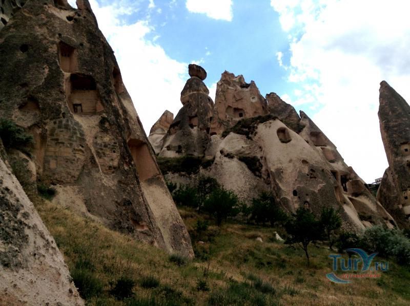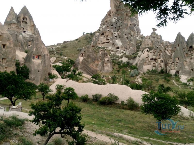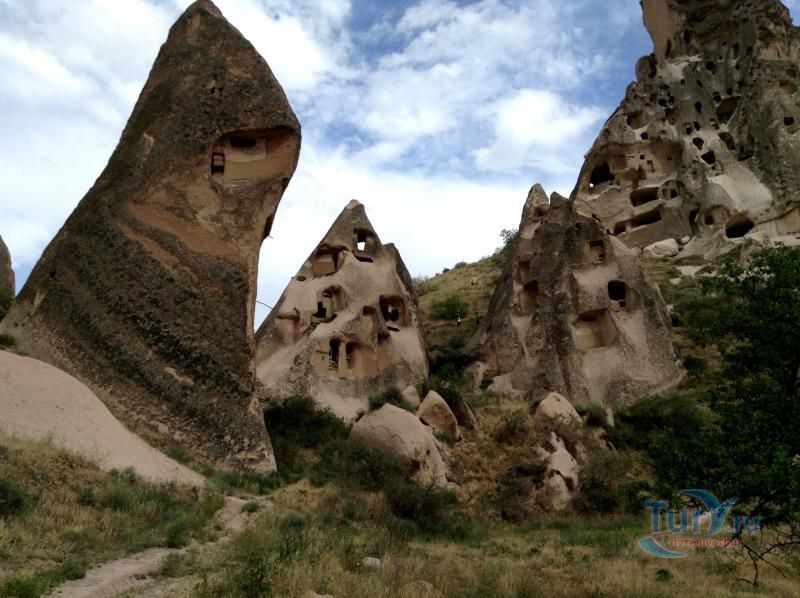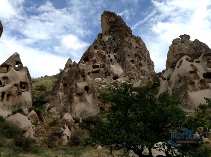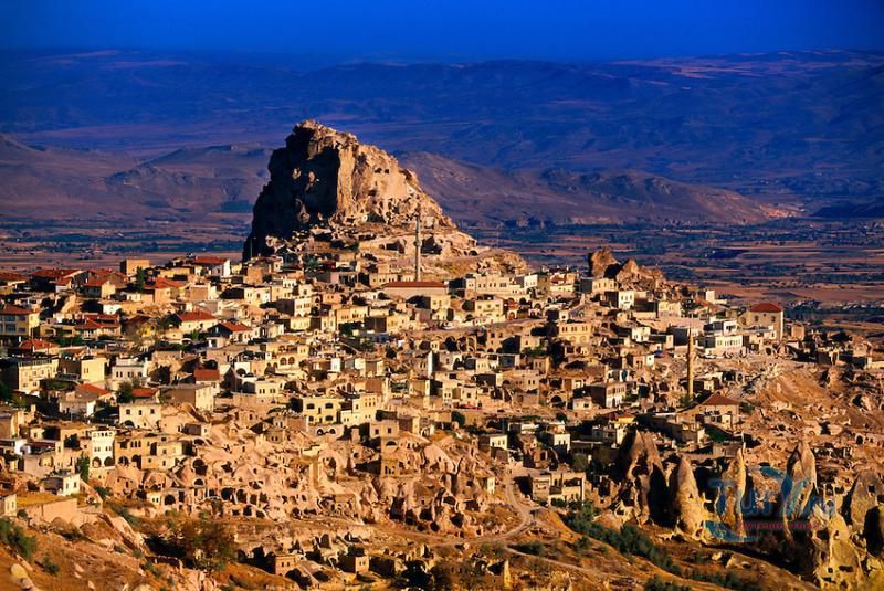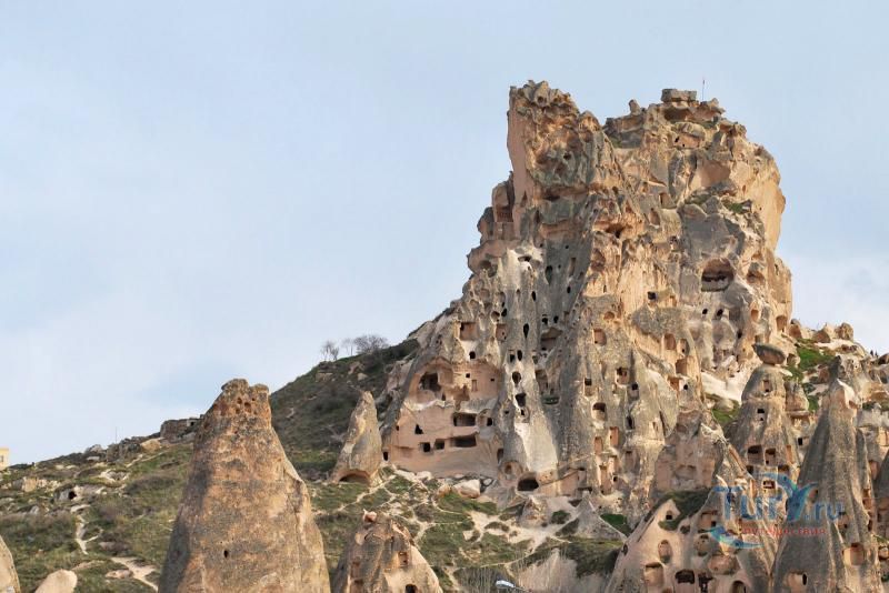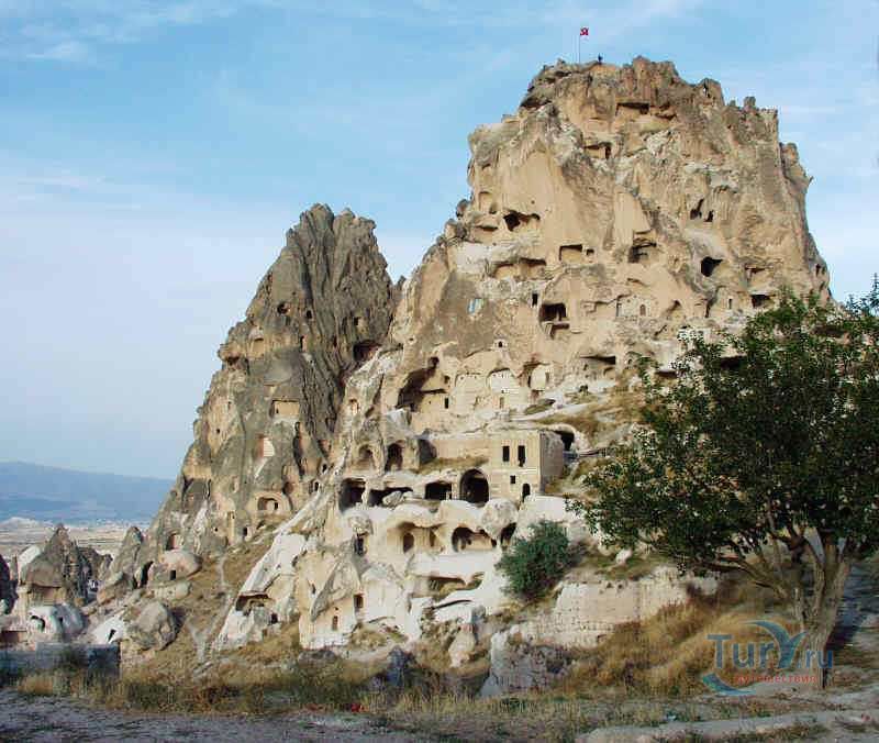 Крепость Учхисар в переводе с турецкого означает «три крепости». Эта шестидесятиметровая скала, возвышающаяся на 1400 метров над уровнем моря, прекрасно просматривается с любой точки окрестностей одноименного местечка Учхисар. История умалчивает о том, кому пришло в голову приспособить эту скалу под крепость, однако известно, что в роли крепости она служила еще в эпоху хеттов в Бронзовом веке, не говоря уже о Риме и Византии.