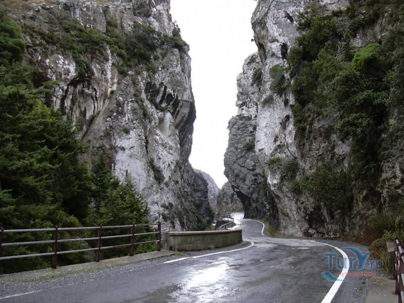 Ущелье очень живописное, крутые скалы подступают вплотную к дороге, иногда даже нависают над ней, образуя своеобразные "ворота".