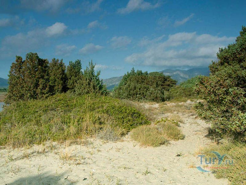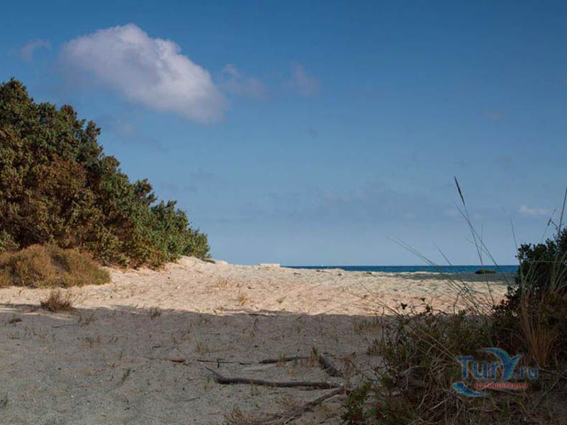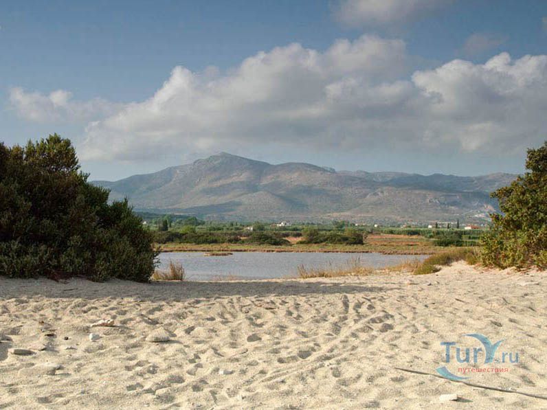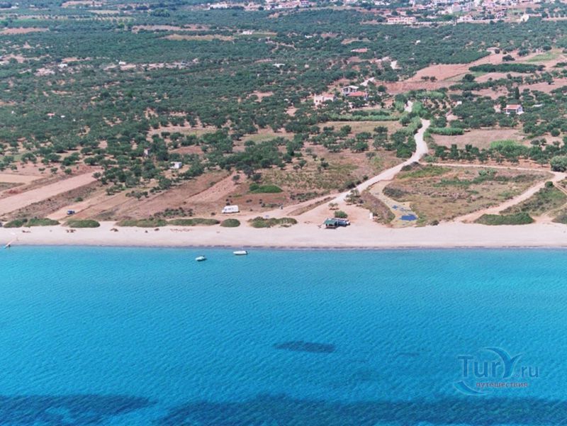 Пляж Маганo - длинный песчаный пляж недалеко от деревни Агиос Георгиос. Вдоль пляжа растут редкие кедры, которые дают возможность отдыхающим спрятаться в тени в излишне жаркие дни. На пляже много места для всевозможных игр. Работает передвижная закусочная.