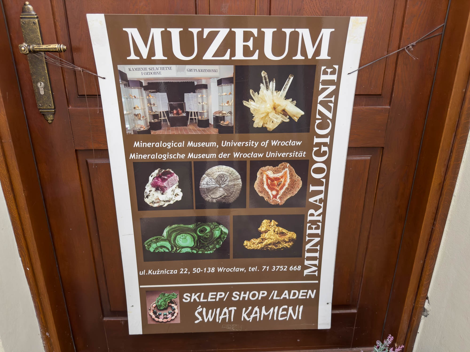 Филиал Минералогического музея Вроцлавского университета, расположенный по адресу улица Кузнича, 22 во Вроцлаве, является частью Минералогического музея Казимежа Масланкевича. Музей, открытый с понедельника по субботу с 10:00 до 15:30, предлагает богатые минералогические коллекции, относящиеся ко времени основания Минералогического кабинета в 1811 году. Первоначально он был основан на коллекциях Государственного горного управления во Вроцлаве, которые в последующие годы были расширены за счет покупок и пожертвований, в том числе: от известных ученых и коллекционеров. Коллекция музея включает образцы минералов, горных пород, окаменелостей, метеоритов, а также драгоценных и декоративных камней, самые старые из которых относятся к периоду до Второй мировой войны.