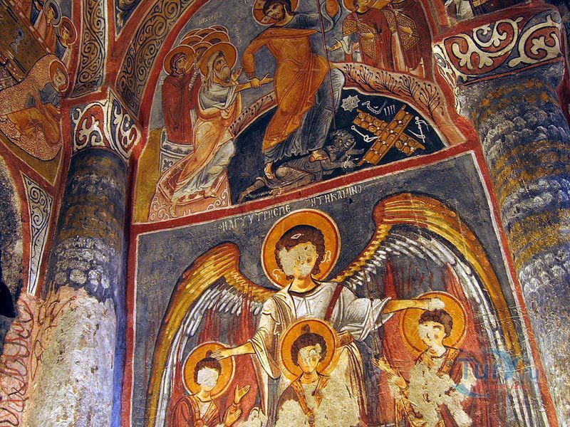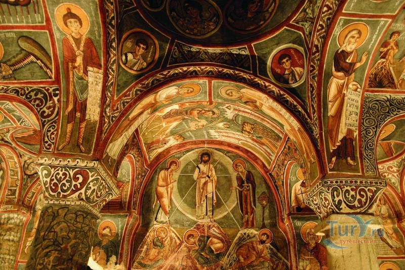 Музей под открытым небом Open Air Museum в Гёреме - это комплекс вырубленных в скалах церквей, часовен и монастырских помещений 10-12 вв. н.э., созданных в Византийский период. Музей объявлен частью Всемирного наследия ЮНЕСКО. Церкви украшены потрясающими фресками, некоторые из которых идеально сохранили цвета - просто удивительные, чистые, солнечные оттенки красного, желтого, небесно-голубого. Другие сильно повреждены от времени и природного воздействия. У фресок часто как будто затерты лица: это уже в последующий период турецкой истории дети выражали недовольство, швыряя в святых камнями, так как изображение человека запрещено исламом. Иногда помимо фресок можно увидеть простые орнаменты, кресты и символы, нанесенные красной охрой - эта роспись относится к более раннему иконоборческому периоду (8-9 вв.), когда изображения святых были запрещены. Музей находится в 15-20 минутах ходьбы от Гёреме - жемчужины Каппадокии. Летом желательно приходить как можно раньше. Днем бывает настоящая давка и очень жарко. Поскольку церкви находятся в пещерах с узким и низким входом, когда люди стоят в проходе, это перекрывает доступ дневного света - единственного источника освещения. Фрески нельзя фотографировать со вспышкой, а в некоторых из церквей фото и видео вообще запрещено.