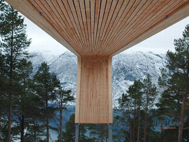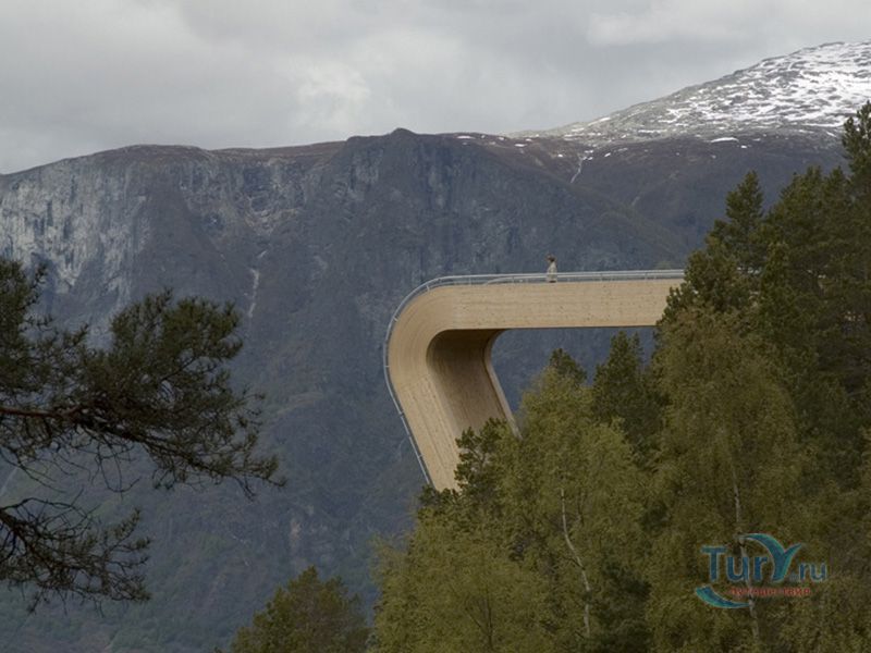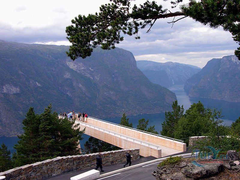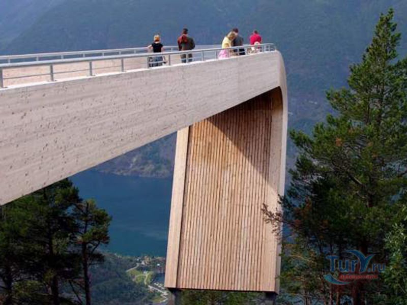 Смотровая площадка Стегастейн расположена в 8 км от деревни Aurlandsvangen, на гористой дороге между Эурланном и Лердалом. Она построена на высоте 650 метров и открывает впечатляющий вид на Эурланн-фьорд. Площадка была открыта в 2006 году. Ее проектированием занимались архитекторы Томи Вильхемсен и Тод Саундерс. Выполнена площадка Стегастейн в виде незаконченного моста, который выступает над пропастью на несколько десятков метров. При этом, в конце её, на первый взгляд, отсутствуют какие-либо ограждения. Выполнена конструкция из древесного массива, клееного бруса и стали. Имеет ширину 4 метра и длину 30 метров. Рядом работают туалеты. Имеется парковка.