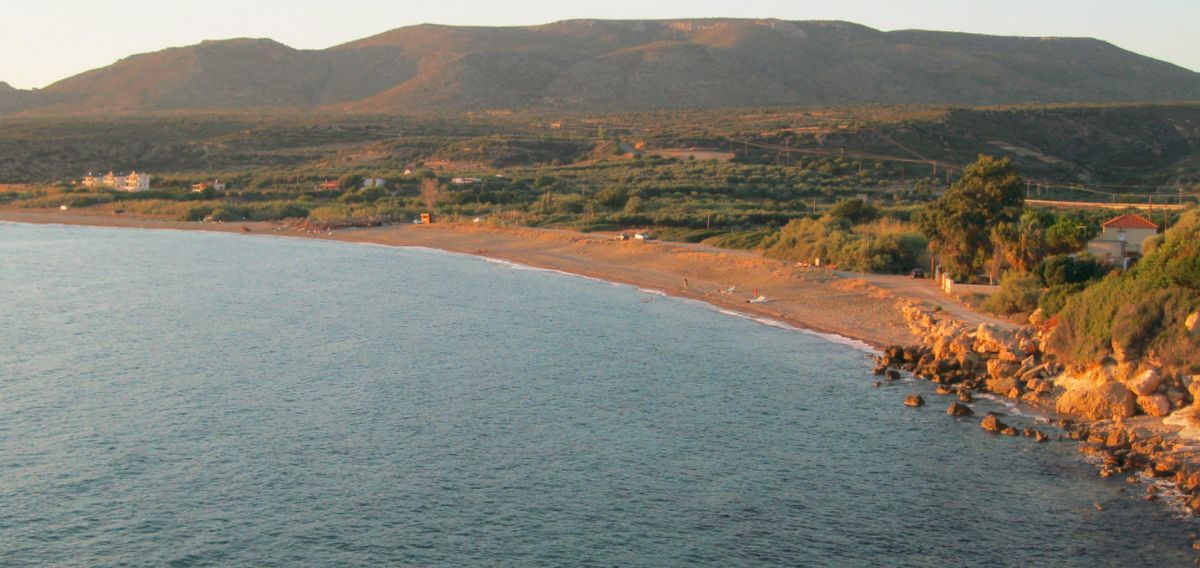 Пляж Пила располагается в центре прибрежной деревни Паралия. Он представляет собой тихий песчаный пляж на мелководье. Здесь есть шезлонги и зонтики, а над пляжем много кафе и рыбных таверн. Прямо над пляжем имеются места для парковки.