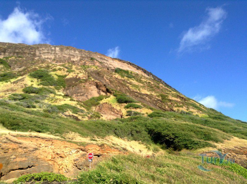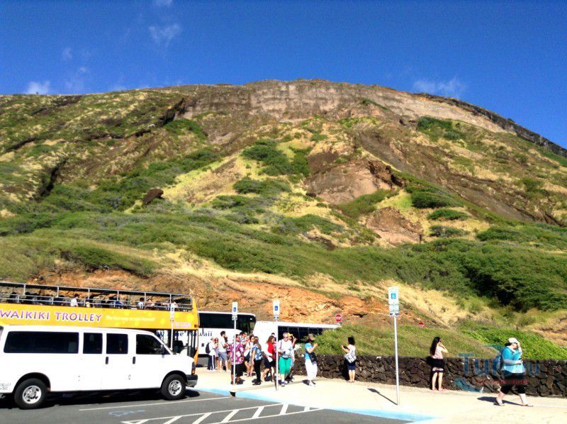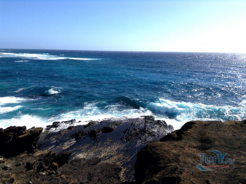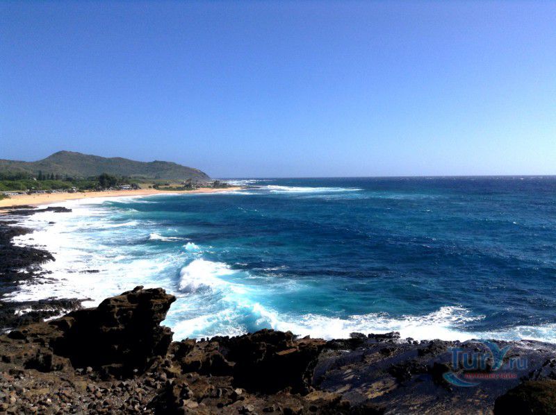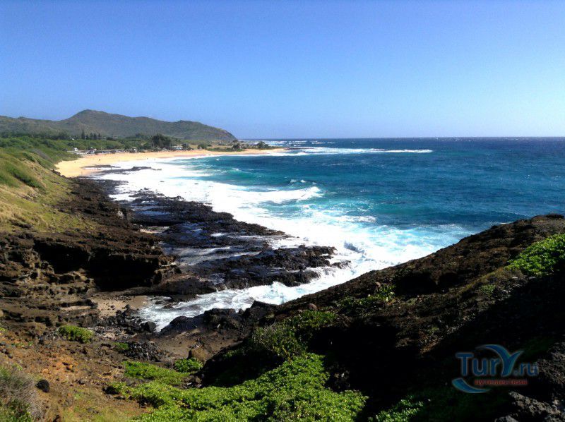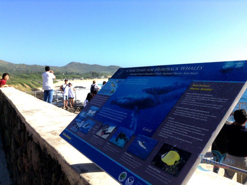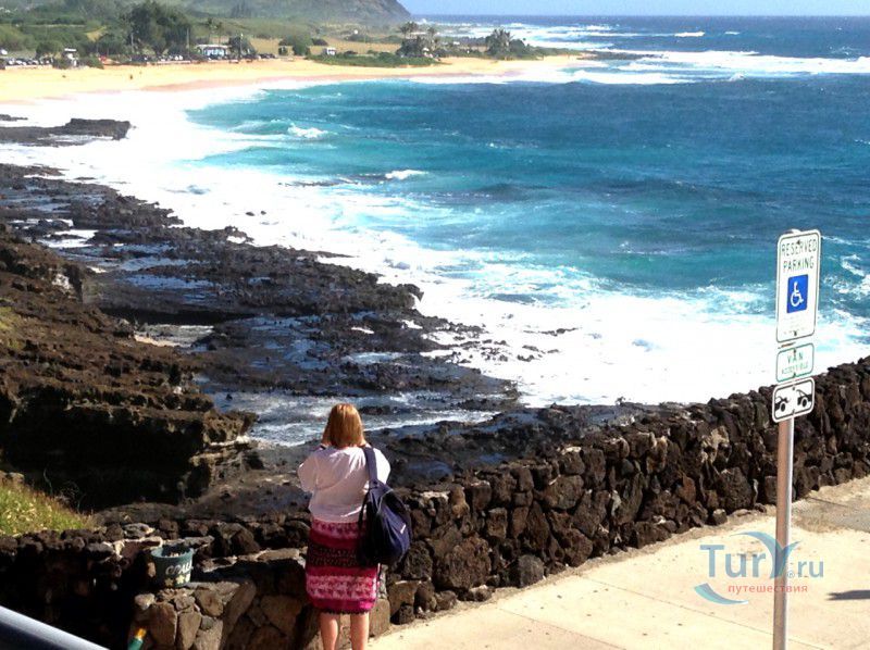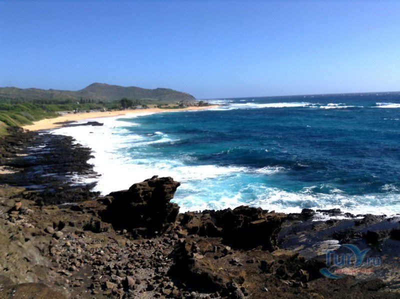 Панорамная площадка Halona Blow Hole Lookout расположена на юго-восточной оконечности острова Оаху - одного из островов Гавайского архипелага. Здесь же в недрах скал находится пещера Halona Cove. Стоя на площадке, можно часами наблюдать за тем как неистовые волны, наваливаясь на черные вулканические скалы побережья, разбиваются в дребезги, создавая огромные столбы белоснежных брызг. С пронзительным воем и свистом продолжая свою титаническую работу снова и снова. Брызги, подсвеченные солнечными лучами, образуют радугу, которая, порадовав немного, тает на глазах и, словно по волшебству, возникает уже в другом месте. Сочетание красок - ярко-голубого неба, темно-синего моря, белоснежно-белых брызг и черных скал, разукрашенных семицветной радугой, интригует и завораживает. Природа поистине великий художник, которому нет равных. С панорамной площадки Halona Blow Hole Lookout хорошо виден Sandy Beach Park, который расположен в 500 метрах на восток.