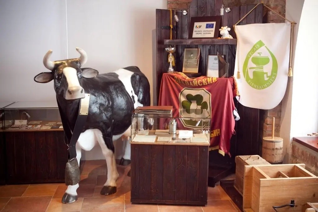 The Dairy Museum welcomes everyone - families with children, groups of travelers and individuals persons The museum offers 250 exhibits that come from various localities, farms and were donated by dairy farms and individuals. One of the most valuable exhibits is a gift given by the British Queen to Latvian dairy farmers for the best export butter in the 1930s, and a box of butter.