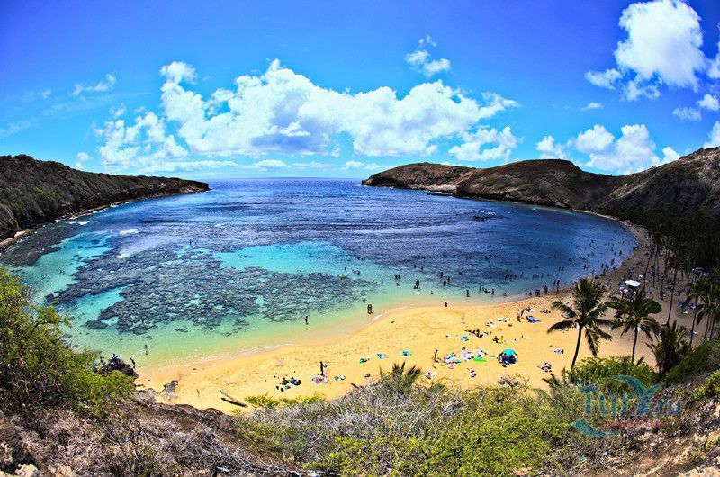 Бухта Ханаума (Hanauma Bay Nature Preserve) расположена к востоку от Гонолулу, на юго-восточном побережье острова Оаху. Она представляет собой морской залив, образованный в виде полукольца. Этот природный заповедник с пышной растительностью, с нетронутой морской природой и красивейшим пляжем из белого песка, находится под охраной государства. Роль заповедника заключается в защите красивой и хрупкой экосистемы залива. В этом тропическом раю находится один из самых больших коралловых рифов на острове, расположенный в кратере потухшего вулкана. В заливе обитают около 450 видов различных рыб, множество зелёных морских черепах и разные виды попугаев. Туристам разрешается плавать вместе с морскими обитателями. Можно поплавать с маской, увидеть экзотических рыб и других представителей океанской фауны, которые не встречаются больше нигде в мире. В 18 веке Бухта Ханаума была излюбленным местом рыбалки гавайских королей. В 1967 году для работы на территории заповедника была создана организация, занимающаяся защитой редких морских обитателей. В августе 2002 года у входа в Бухту Ханаума был открыт Образовательный Морской Центр, где посетителям показывают десятиминутный учебный фильм. В течение дня заповедник посещают около 3000 человек, что составляет приблизительно один миллион посетителей в год. Бухта Ханаума является одной из самых популярных достопримечательностей на острове.